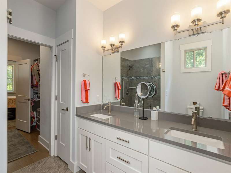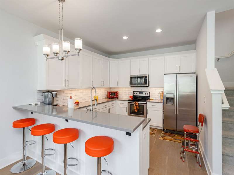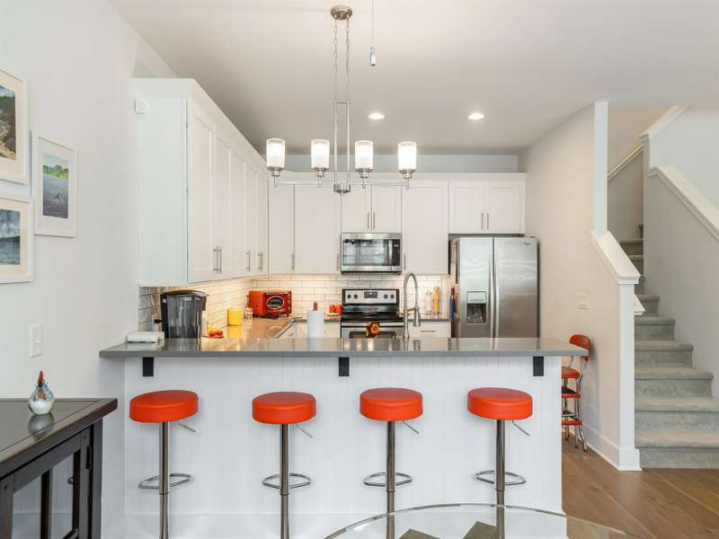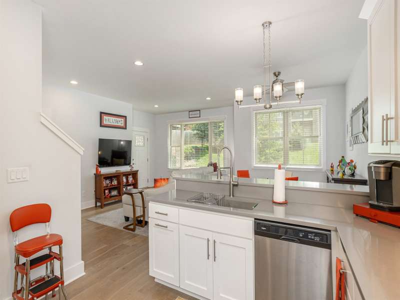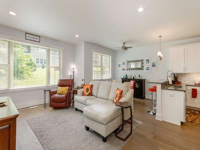 One owner townhome in convenient East Asheville community - Haw Creek. Located in Dillingham Woods, property is an end unit offering 3 bedrooms, 2 full baths and one half bath. Main level provides a spacious primary bedroom, large closet and nice bath with step in shower. The open floorplan includes eat-in dining area, den/living room and direct access to an outdoor patio/deck. LVP and tile flooring, quartz counter tops, nice cabinetry stainless appliances with subway styled tile backsplash. Upstairs offers two bedrooms, full guest bathroom, laundry area and open loft for office, arts studio, library, sitting or recreation area. Covered front porch and a Main level double car garage.