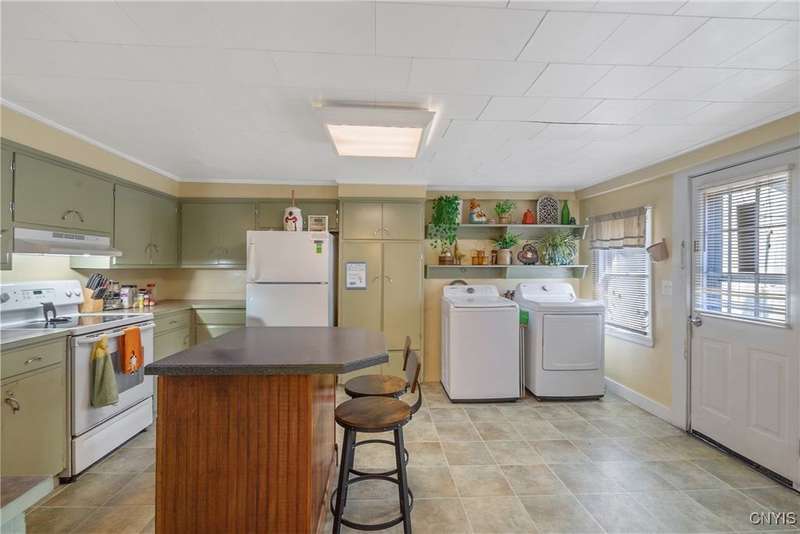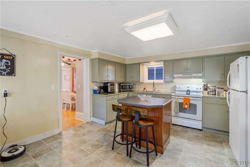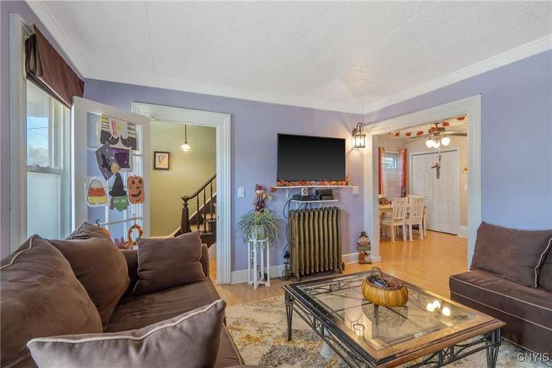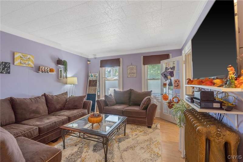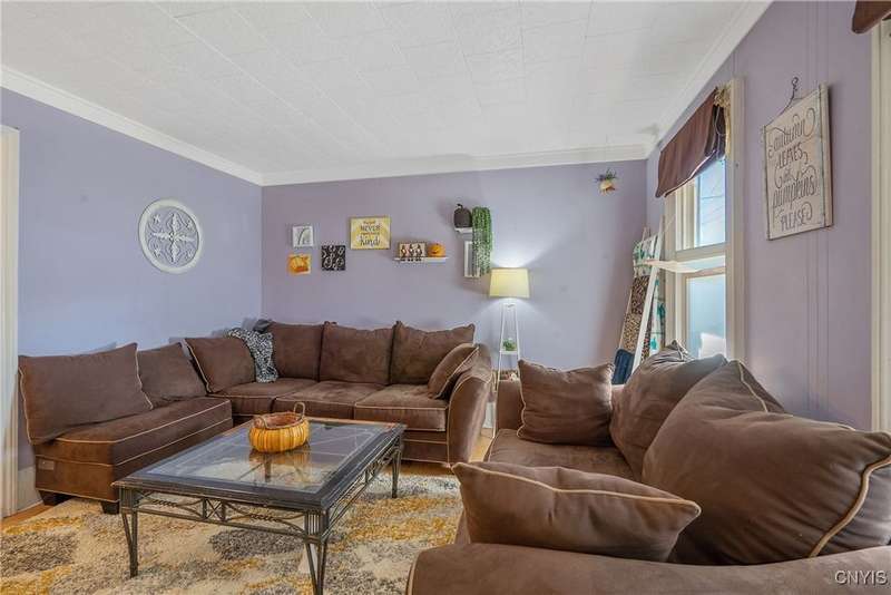 Fantastic find! Awesome Oswego home with many updates is ready for you to move in or great investment property! Located close to all conveniences, on a wonderful neighborhood street. From the large and lovely front porch, come into the welcoming foyer. Tons of natural light in the living/dining room, with a first floor bedroom. Large open kitchen with ample storage and laundry hook up. Up the beautiful staircase, 2 good sized bedrooms, and full bath. Full walkout basement offers plenty of space for storage. Outside you will find a double lot that is partially fenced in. Plenty of off-street parking and a shed for more storage.Updates include windows, roof, furnace, hot water tank and more!