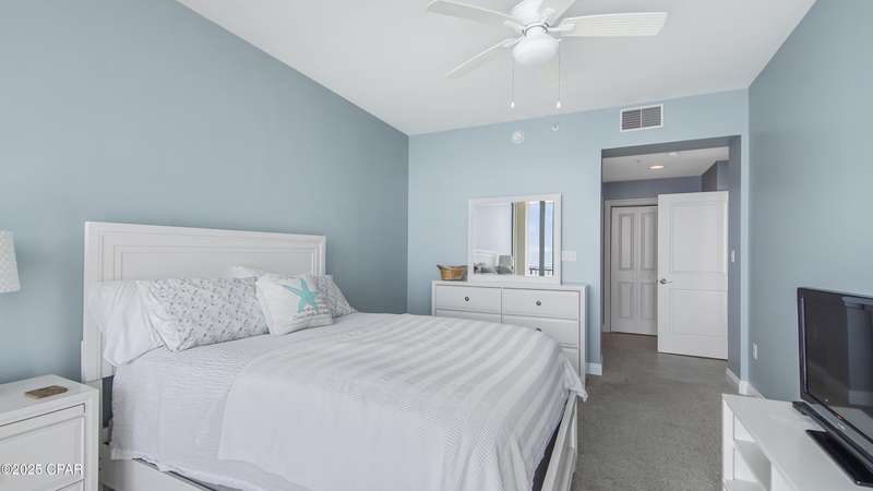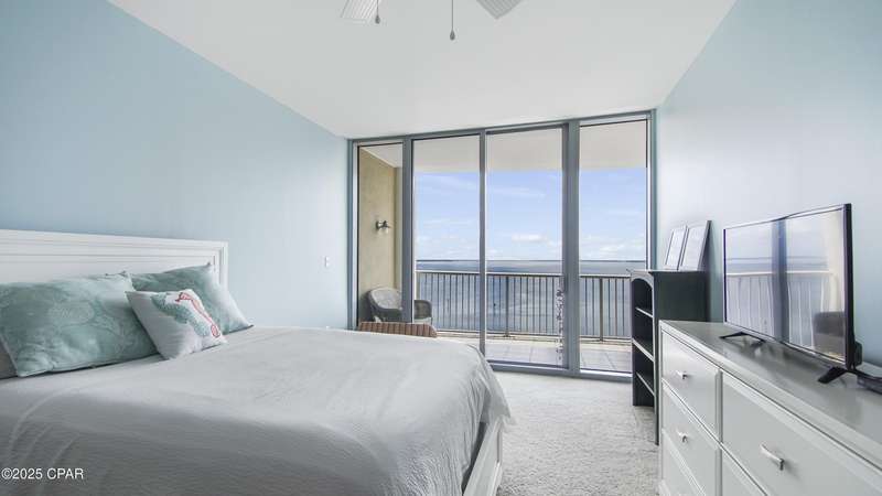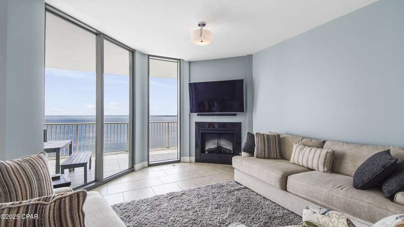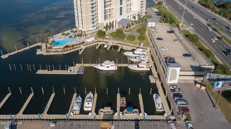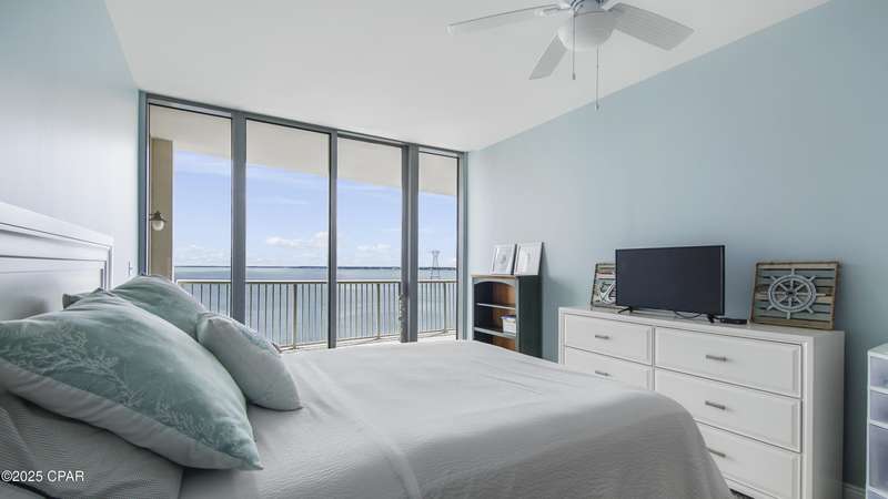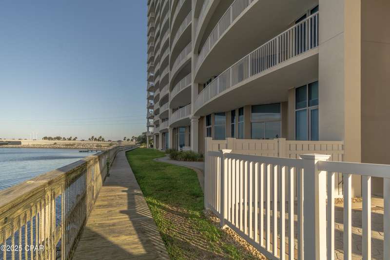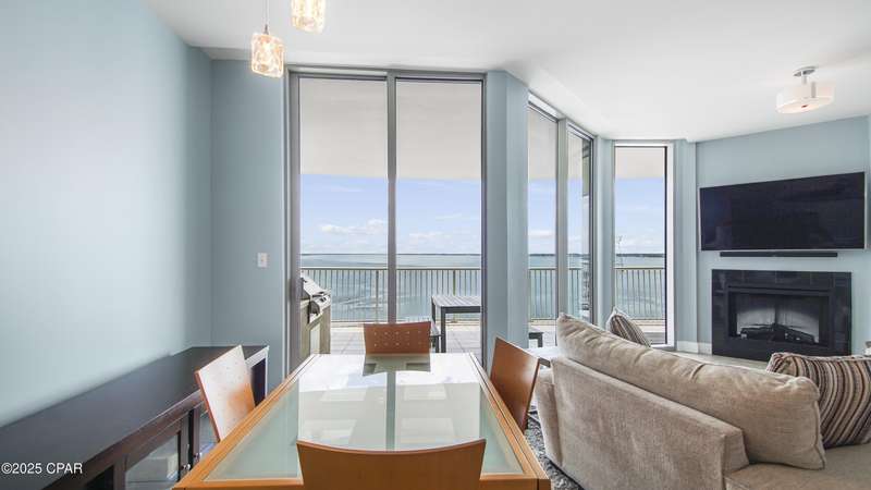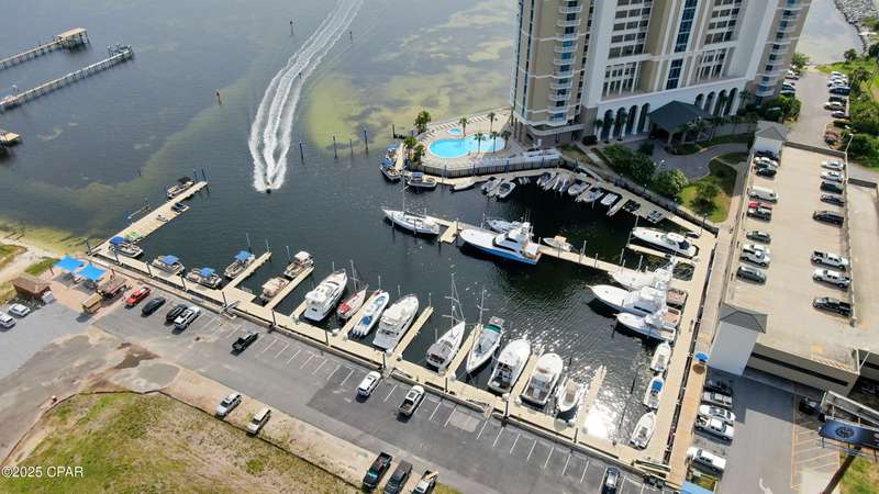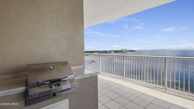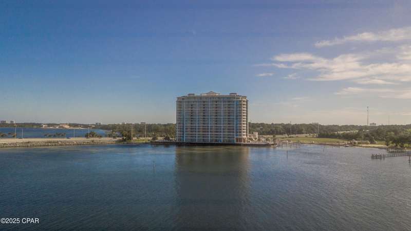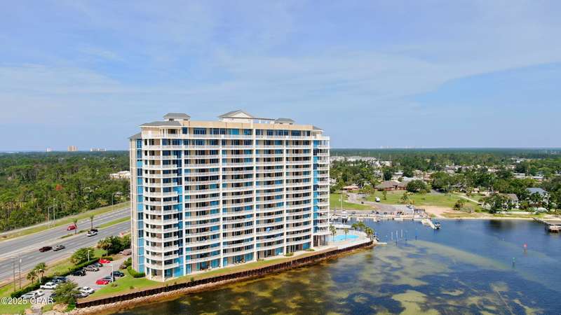 Experience waterfront living at Marina Landing with this 2-bedroom, 2-bath high-rise condo offering 1,384 sq. ft. of comfortable coastal living. This 8th-floor unit showcases stunning panoramic views of St. Andrews Bay from every room and features an expansive balcony with a built-in grill--perfect for entertaining or relaxing at sunset.Both bedrooms are bayfront suites with balcony access and walk-in closets. The primary bathroom includes a double vanity, separate tiled shower, and soaking tub. The open-concept living and dining area is highlighted by floor-to-ceiling windows that fill the space with natural light.Marina Landing offers resort-style amenities including a bayfront pool and spa, fitness center, picnic area, and boat launch access. One assigned covered parking space is included. This community does not allow short-term rentals, providing a serene and private atmosphere for full-time residents or second-home owners.All information is deemed accurate but should be verified by the buyer and/or buyer's agent if important. Schedule your private showing today!