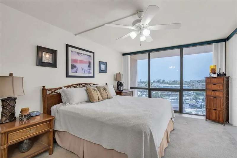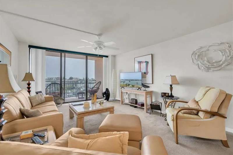 WHAT IF I TOLD YOU that you could trade in maintaining a home and instead live “maintenance free” in Treasure Island’s Best Kept Waterfront Secret …a GATED Condo Community (2 ELEVATED Buildings), on a PRIVATE ISLAND with views of Johns Pass… and instead of maintaining a house yourself, you can spend your free time enjoying ALL of the AMENITIES of a 1st Class RESORT …. for only $485/month … INCLUDING Cable TV, Internet and WIFI, water, sewer, trash, security, The LAWN MAN, The POOL MAN, amenities upkeep, building staff, pest control, elevator contracts, and etc? … if you’re in a single family home now (and you add up all those expenses), you’d think I was CRAZY!! … Well, you can … ALMOST … at Key Capri… work with me, here - You will need to add Bldg INSURANCE (Hazard, wind AND Flood) - at just $327/mo. … and because you HATE unexpected big bills (aka special assessments) you’re going to contribute money every month to a savings account of the association … so that they will have money to address scheduled and anticipated maintenance of those items which need maintaining … this year your 2-Building, 177-unit community will save OVER $860,000 for these items … your share of that is just $419/mo …sounds like a Strong and Fiscally Responsible Association … not to mention an Exceptional Value … esp compared to what people are paying for JUST Flood and Homeowners Insurance on single family homes nearby! Check me on that! … This is a CORNER unit with a PREFERRED Southwest exposure (enjoy more winter, less summer sun)… THREE BALCONIES —one off the living room, one off the master suite, and one off guest bedroom—each offering its own impressive waterfront view … From the Master Bedroom and its balcony, enjoy year-round sunset exposures and a front-row seat to picturesque Johns Pass … watch the boating activity, The Bridge, The Village, and Gulf … From fishing charters to sailboats, Pirate Ships, Floating Tiki Bars to dolphins, there’s never a dull moment here!! … This split-bedroom floor plan offers privacy for you and your guests … cross ventilation from the corner location keeps the space bright and breezy, all with one less next-door neighbor than other units here!... Located six stories above parking, you’ll enjoy a sweeping panorama day and night … Move-In Ready … Newer kitchen and updated tile baths each with NEW QUARTZ Countertops … Lightly used as a 2nd-home for nearly 15 yrs—it shows well and is move in ready (some furnishings may be negotiable) … Assigned under-building parking & private storage shed … In-unit laundry … Your views include boats in Key Capri’s private marina, geothermically heated & cooled pool, and tiki hut … Key Capri offers every amenity you could want: HEATED (and cooled) Pool, spa, fishing dock, kayak launch … Fitness center with men’s & ladies’ saunas and showers … BBQ area, shuffleboard, pickleball/tennis court, billiards and game room …Social room, tiki hut with wet bar & ice maker, putting green, and children’s play area / swing set … Breathtaking walking path encircling the island with Intracoastal and Johns Pass views … Expansive landscaped green space rarely found in waterfront condos … With a newer roof, recent common area updates ($1.9M worth), and move-in ready condition, this home is priced at about half the cost of a waterfront lot or flooded house in the area … Don’t wait—schedule your showing today and experience why Key Capri is Treasure Island’s best-kept waterfront secret!