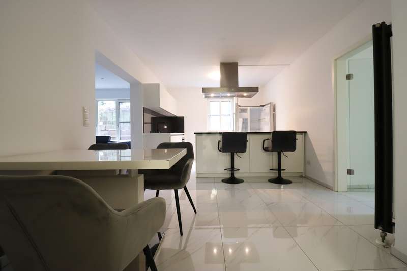 This exclusive 2-room apartment with a generous living space of 75 m² offers an exceptional living ambience characterized by high-quality materials, a modern design and an open-plan layout. The entire apartment was extensively modernized in 2023 so that it now meets the requirements of contemporary, comfortable and stylish living in every respect. As soon as you enter the premises, you can feel that a great deal of emphasis has been placed on quality, design and functionality. The focal point of the apartment is the open-plan living and cooking area. The high-quality fitted kitchen, equipped with an elegant granite worktop, blends harmoniously into the modern living concept. In addition to its attractive appearance, it offers ideal conditions for amateur chefs and connoisseurs: modern electrical appliances, plenty of storage space and a practical counter that serves as both a breakfast area and a communicative element. The adjoining dining area creates an inviting atmosphere where you can enjoy convivial evenings as well as quiet moments over a good meal. The open-plan design creates a flowing transition between cooking, dining and living, giving the apartment a spacious and bright feel. A special architectural highlight are the sliding glass doors that have been installed in several areas of the apartment. They enable flexible room partitions and at the same time ensure that natural light can circulate freely. This creates an airy, open atmosphere that perfectly underlines the modern living concept. The bathroom has also been completely modernized and features a contemporary design. High-quality fittings, tasteful tiles and well thought-out room planning create a place of relaxation and well-being. Attention has been paid to every detail to increase everyday comfort. Another highlight that is rarely found in this form is the spacious dressing room. Not only does it offer an extraordinary amount of space for wardrobe, shoes and accessories, it also allows for perfect organization. The dressing room significantly enhances living comfort and makes the apartment particularly attractive for discerning residents. The property also impresses on the outside: three parking spaces right outside the front door provide a considerable practical advantage and make everyday life much easier. Whether for singles with several vehicles, households with two people or guests - the parking spaces guarantee stress-free parking at all times, which is anything but a matter of course in many residential areas. This description is merely a first impression, as the special atmosphere of this apartment is best experienced during an on-site viewing. Numerous other details, high-quality features and the successful spatial effect only unfold their full effect when you walk through the rooms yourself.