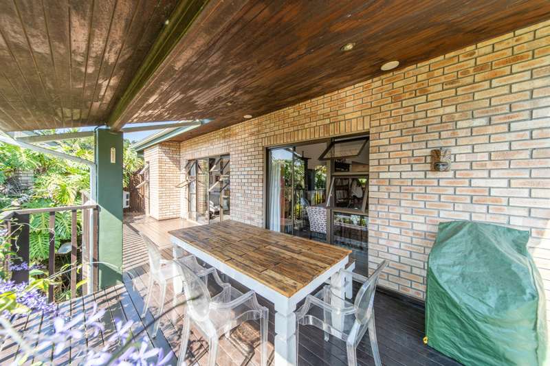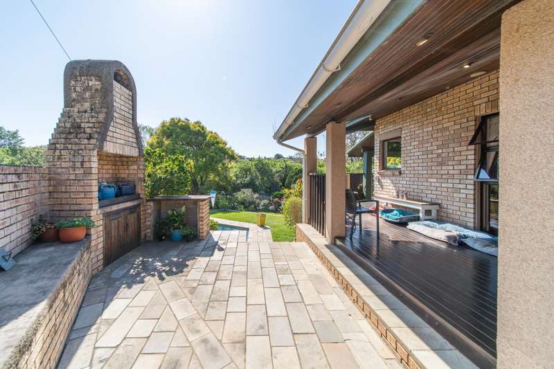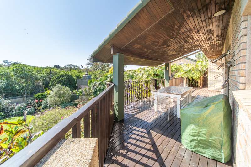 This charming Stirling residence combines the peace of mind that comes with secure complex living with the generous space and comfort of a standalone home. From the moment you step inside, this beautifully maintained home impresses with its space, charm, and lifestyle features. The living areas are designed for both comfort and entertaining, featuring a dining area, a built-in bar with a working fireplace, and a cozy lounge that flows seamlessly onto a wraparound deck. From here, you can enjoy views of the immaculate garden, sparkling swimming pool, and patio complete with a built-in braai—perfect for gatherings with family and friends or enjoying the sounds of local wildlife. The well-appointed kitchen offers ample storage and workspace, complemented by a separate scullery for convenience. Downstairs, the sunlit main bedroom includes a spacious en-suite bathroom and a private outdoor shower—an ideal retreat on warm summer days. Upstairs you’ll find two generous bedrooms, a full family bathroom, and a versatile third room that can serve as a home office, pajama lounge or kids homework room. Additional features include an automated double garage, a separate domestic room, and a fitted alarm system, ensuring both comfort and peace of mind. Situated just minutes from Stirling schools, James Pearce Park, Nahoon Golf Course, and the beach, this home truly offers the perfect balance of family living and prime location.