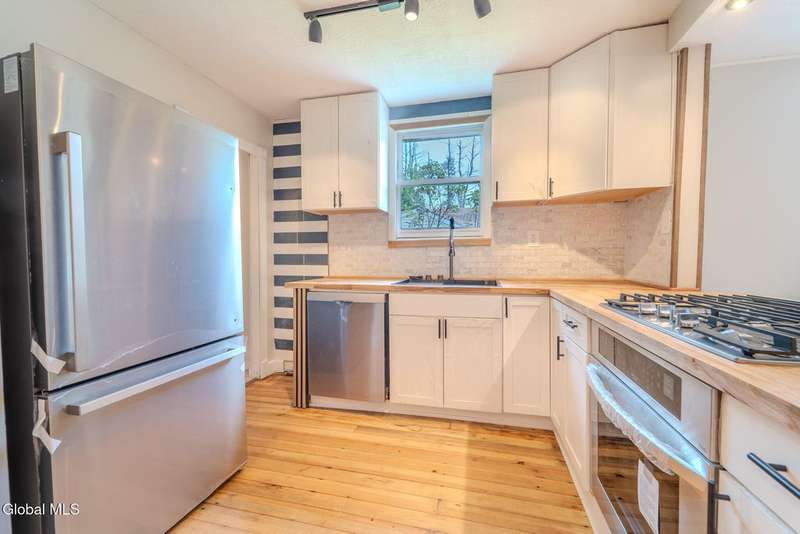 Adorable Fully Renovated One-Level Home. This home features 3 BEDS, 1BATH, open concept, modern kitchen, butcher block countertops, stainless steel appliances. Partially finished basement with a bar and workshop.Walking distance to the Nassau Lake, views in the colder months. LOW taxes and Move-In Ready!