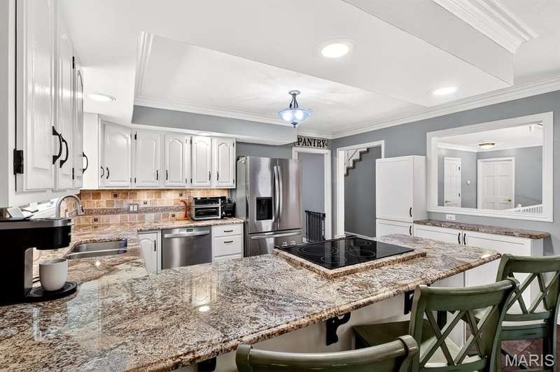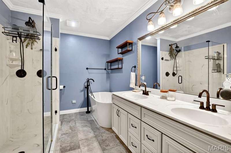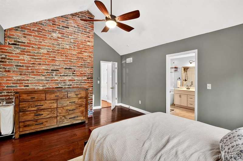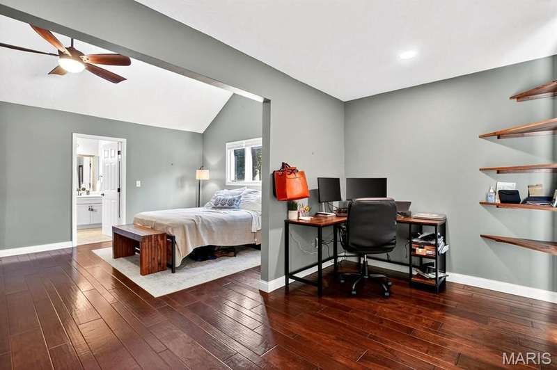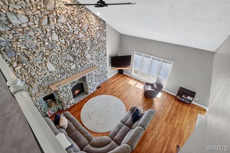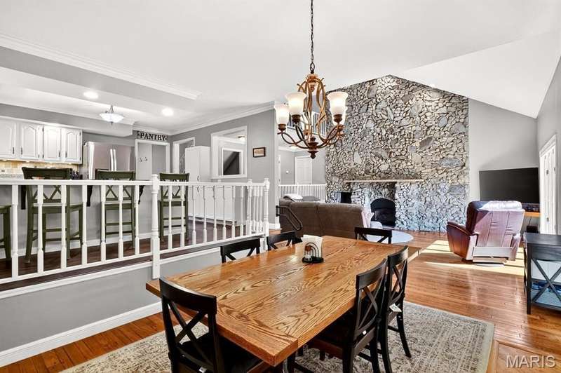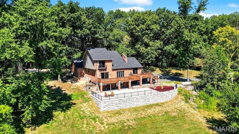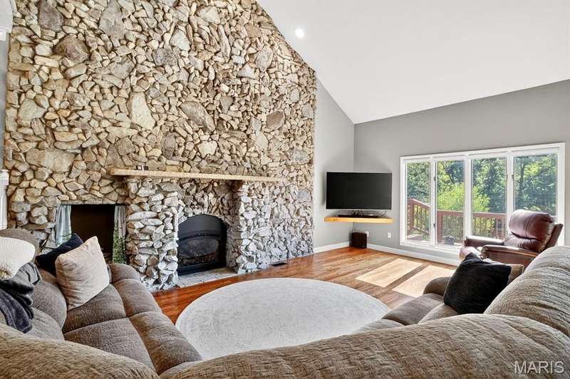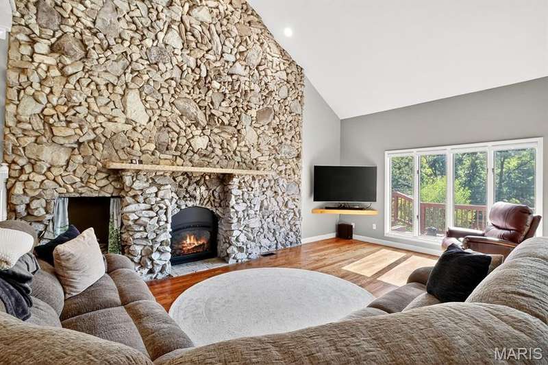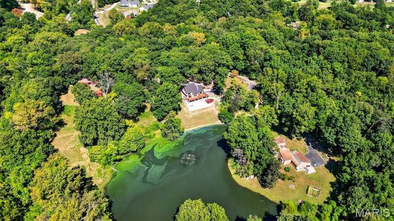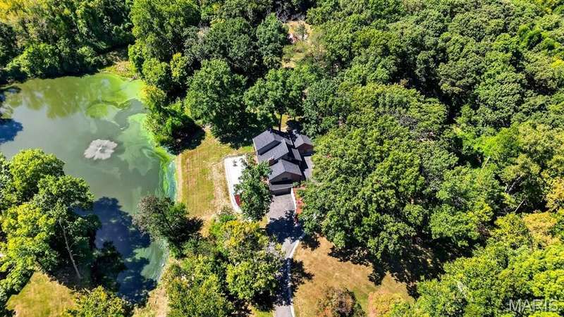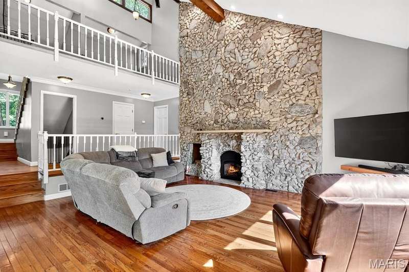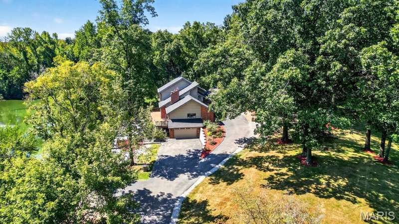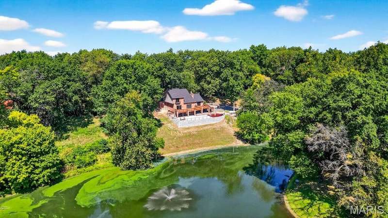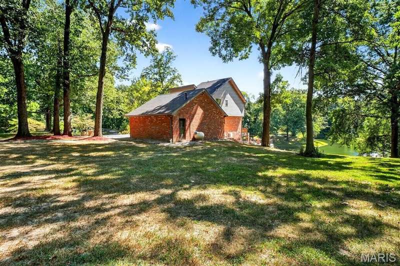 Escape to a private retreat, in this 1.5 story home on 6.24 acres w/well stocked lake. 4 bed/4 bath across 4,446 sq feet. Vaulted living room includes stunning floor to ceiling stone gas fireplace. Main-level master suite offers deck access, an electric fireplace, and a spa-like bath with double sinks, soaking tub, and separate shower. Upstairs features a loft, two bedrooms, Jack & Jill bath, and a balcony. The finished basement includes a bedroom, full bath, family room with brick wood-burning fireplace, and a bar with granite countertops. New shed on site! New roof & many more updates!