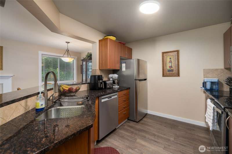 CASH ONLY SALE - Welcome Brio Condominiums! This beautifully updated 3 bed, 2 full bath ground-floor condo offers the perfect blend of modern finishes and commuter-friendly location. This inviting home boasts an efficient kitchen with granite countertops, updated neutral paint and newer carpet and flooring. Enjoy your morning coffee on the covered patio or unwind in the sun-kissed, fenced, private yard—your own peaceful retreat. In the cooler months, cozy up by your wood-burning fireplace! Situated with easy access to I-5/405 & Hwy 99, Lynnwood Light Rail station, Alderwood Mall, the Brio community offers resort-style amenities including a cabana with an exercise room and a sparkling outdoor pool, indoor hot tub, and playground.
