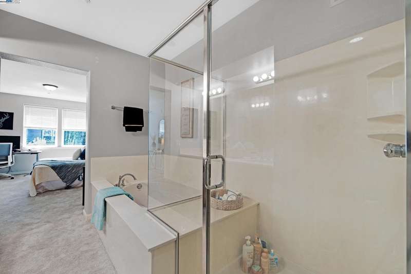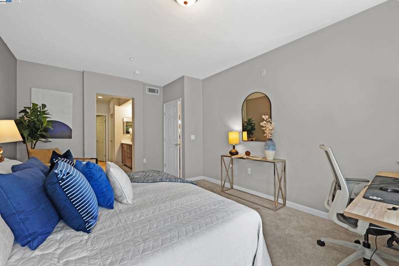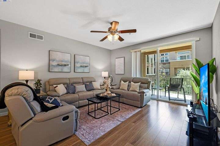 Welcome to your new home in the highly sought-after, gated Montebello Community. This luxurious condo, nestled in the prestigious Warm Springs area, is an exceptional opportunity for families, professionals, and investors alike. Step inside and discover an open-concept living and dining area, bathed in natural light and featuring new laminate flooring. The spacious gourmet kitchen is a chef's dream, boasting ample counter space, abundant cabinetry, and a full suite of stainless steel appliances, including a cooktop range, built-in oven, microwave, dishwasher, and refrigerator. The large master suite is a private retreat, complete with a walk-in closet and a spa-like suite bathroom featuring a separate stall shower, soaking tub, and a double-sink vanity. The second bedroom is equally comfortable, with plush carpeting. This home also includes a new in-unit washer and dryer, central heating and air , and a spacious balcony perfect for relaxing. Two assigned tandem parking spots in a secured, gated garage, as well as plenty of guest parking throughout the community. With a low monthly HOA fee of $423, you can enjoy fantastic amenities, including a clubhouse, gym, water, trash ,Unbeatable location with easy access to freeways ,major tech companies, shopping, Award winning schools.