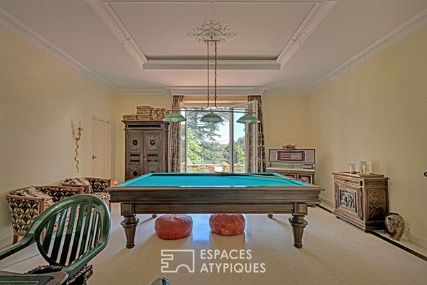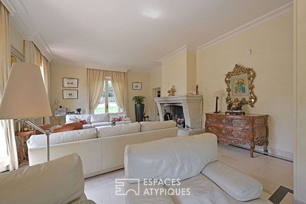 Elle developpe 273 m2 habitables, auxquels s'ajoutent des dependances et un garage. Le rez-de-chaussee accueille une piece de vie baignee de lumiere avec cheminee, une salle a manger, une cuisine amenagee et une salle de jeux. Chaque piece s'ouvre sur de spacieuses terrasses, pensees comme de veritables lieux de vie exterieurs, propices aux repas en plein air et aux instants de detente.