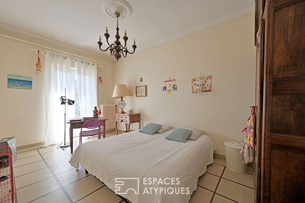 À l'etage, l'espace nuit comprend un bureau et 4 chambres, dont une avec salle d'eau privative, ainsi qu'une salle de bain supplementaire.