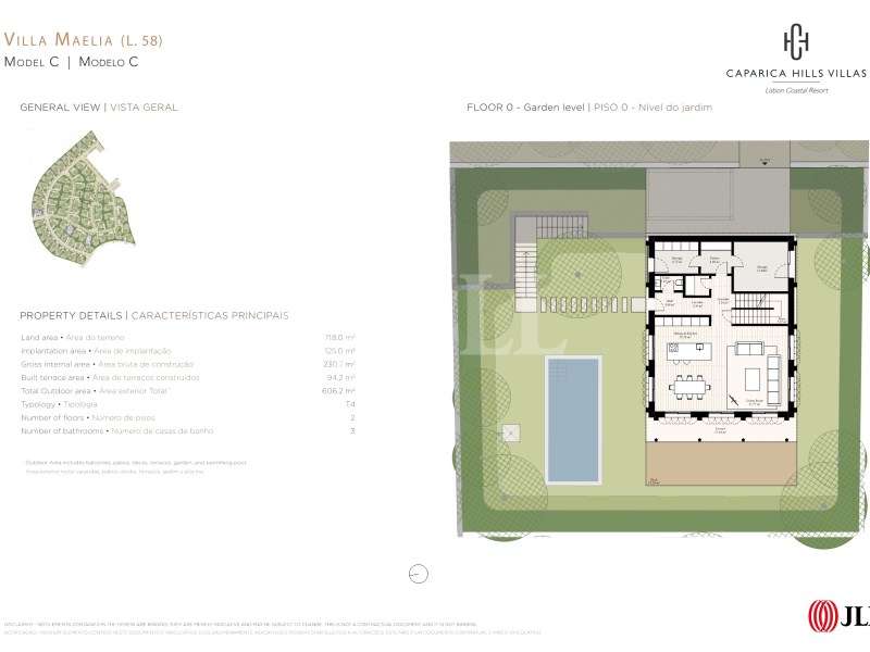 Moradia T4 nova com 231 m2 de área bruta de construção, jardim e piscina privativos, no Caparica Hills Villas, na Costa da Caparica. As unidades do Caparica Hills Villas oferecem garagem privativa, elevador, amplas zonas de lazer e espaços de arrumação. A construção incorpora elementos sustentáveis como painéis de madeira, coberturas ajardinadas e vegetação local, garantindo eficiência energética e conforto durante todo o ano. O empreendimento integra-se num resort completo que inclui o Hotel IHG Crowne Plaza Caparica Lisbon, instalações de bem-estar com spa, fitness club e estúdio de yoga, um campo de golfe de 9 buracos e uma zona comercial com 20 lojas boutique. Nos planos futuros estão previstos um centro desportivo e uma escola. A localização do Caparica Hills Villas combina tranquilidade e conveniência: a 5 minutos do mar, a 15 km do centro de Lisboa (15 minutos de carro) e próximo do aeroporto principal. Para compras diárias, o supermercado encontra-se nas imediações. O Caparica Hills Villas representa uma proposta de valor equilibrada para quem procura um investimento imobiliário ou residência numa das zonas de maior potencial de valorização da Grande Lisboa, conjugando proximidade à capital com a qualidade de vida junto ao mar. Categoria Energética: A #ref:90862