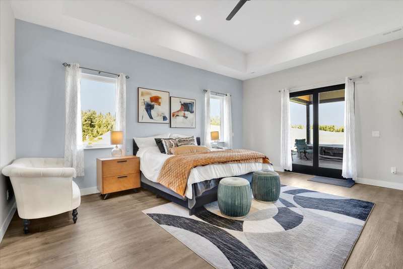 Welcome to Your Dream Home in River Bluff Ranch. Enter into this stunning 1 level living with 5bed/4bath ranch-style home, where luxury meets comfort. Spanning 4,000 sq ft, built in 2023, this residence offers a warm and inviting atmosphere. The great room concept features floor-to-ceiling windows that frame picturesque views of rolling hills, creating a serene backdrop for daily living. The commercial-grade gourmet kitchen, adorned with quartz countertops, is a chef's paradise, perfect for entertaining. The primary bedroom and bath, along with a cozy office, are thoughtfully positioned at one end of the house for ultimate privacy. On the opposite end, you'll find three additional bedrooms, 2 with their own private bath, ensuring comfort for all. 2 spacious family rooms provide ample space for relaxation & entertainment, complemented by a fireplace, 12ft ceilings, and elegant 8ft doors. Outside, the expansive back deck invites you to unwind and enjoy the beauty of over 2 acres and says Welcome Home.