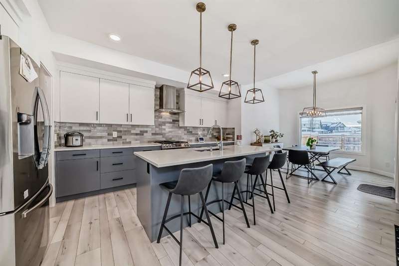 Welcome to this STUNNING HOME in Calgary’s master-planned communitY in Pine Creek, a neighborhood like no other. With more than half of the community preserved as environmental reserve, this neighbourhood offers BREATHTAKING SOUTHERN Alberta VIEWS and tranquil natural surroundings. This HUMBLE ABODE HAS Centralized A/C and has total finished area of 2,860.8 square feet, MAIN LEVEL HAS 9’ CEILINGS, TRIPLE PANE WINDOWS and DURABLE VINYL PLANK FLOORS .ALL are harmoniously paired with stylish designer details and neutral hues. The open-to-above entrance TRULY creates a grand first impression, setting the tone for the elegance throughout. The kitchen is a culinary haven, featuring FULL HEIGHT RICH CABINETRY , ELEGANT STONE COUNTERTOPS, and an OVERSIZED breakfast bar island. It also includes an UPGRADED BACKSPLASH + SOFT- CLOSE cabinets, and a SPACIOUS WALK-THROUGH PANTRY for effortless grocery unloading. The inviting living room centers around a sleek fireplace, creating a cozy atmosphere, while the dining area encased in windows provides a breathtaking setting for meals and gatherings. A conveniently located den near the entrance offers a quiet and functional workspace. Upstairs, the bonus room is perfect for family movie nights or game days. This level also features a laundry room and three spacious bedrooms, including the primary suite, a luxurious retreat complete with a relaxing sitting area. The 5-pc ensuite is a haven of comfort with DUAL SINKS, a DEEP SOAKER TUB, and a separate shower. The FULLY FINISHED BASEMENT features a den, additional bedroom, a spacious games room, complete with a 4-pc bathroom for guests to enjoy. The OVERSIZED DOUBLE ATTACHED GARAGE complements the home’s elegant architecture, adding to its impressive curb appeal (WITH SHELVES INSIDE THE GARAGE). THE FRONT AND BACKYARD ARE PROFESSIONALLY LANDSCAPED. Situated in an unbeatable location, this exceptional property offers the perfect balance of luxury, comfort, and convenience. AMENITIES IN MINUTES: CLOSE to shopping, groceries, parks, banks and schools. Don't miss the opportunity to make it yours! BOOK YOUR SHOWING NOW!!!