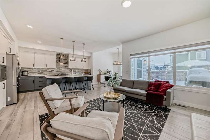 Welcome to this STUNNING HOME in Calgary’s master-planned communitY in Pine Creek, a neighborhood like no other. With more than half of the community preserved as environmental reserve, this neighbourhood offers BREATHTAKING SOUTHERN Alberta VIEWS and tranquil natural surroundings. This HUMBLE ABODE HAS Centralized A/C and has total finished area of 2,860.8 square feet, MAIN LEVEL HAS 9’ CEILINGS, TRIPLE PANE WINDOWS and DURABLE VINYL PLANK FLOORS .ALL are harmoniously paired with stylish designer details and neutral hues. The open-to-above entrance TRULY creates a grand first impression, setting the tone for the elegance throughout. The kitchen is a culinary haven, featuring FULL HEIGHT RICH CABINETRY , ELEGANT STONE COUNTERTOPS, and an OVERSIZED breakfast bar island. It also includes an UPGRADED BACKSPLASH + SOFT- CLOSE cabinets, and a SPACIOUS WALK-THROUGH PANTRY for effortless grocery unloading. The inviting living room centers around a sleek fireplace, creating a cozy atmosphere, while the dining area encased in windows provides a breathtaking setting for meals and gatherings. A conveniently located den near the entrance offers a quiet and functional workspace. Upstairs, the bonus room is perfect for family movie nights or game days. This level also features a laundry room and three spacious bedrooms, including the primary suite, a luxurious retreat complete with a relaxing sitting area. The 5-pc ensuite is a haven of comfort with DUAL SINKS, a DEEP SOAKER TUB, and a separate shower. The FULLY FINISHED BASEMENT features a den, additional bedroom, a spacious games room, complete with a 4-pc bathroom for guests to enjoy. The OVERSIZED DOUBLE ATTACHED GARAGE complements the home’s elegant architecture, adding to its impressive curb appeal (WITH SHELVES INSIDE THE GARAGE). THE FRONT AND BACKYARD ARE PROFESSIONALLY LANDSCAPED. Situated in an unbeatable location, this exceptional property offers the perfect balance of luxury, comfort, and convenience. AMENITIES IN MINUTES: CLOSE to shopping, groceries, parks, banks and schools. Don't miss the opportunity to make it yours! BOOK YOUR SHOWING NOW!!!