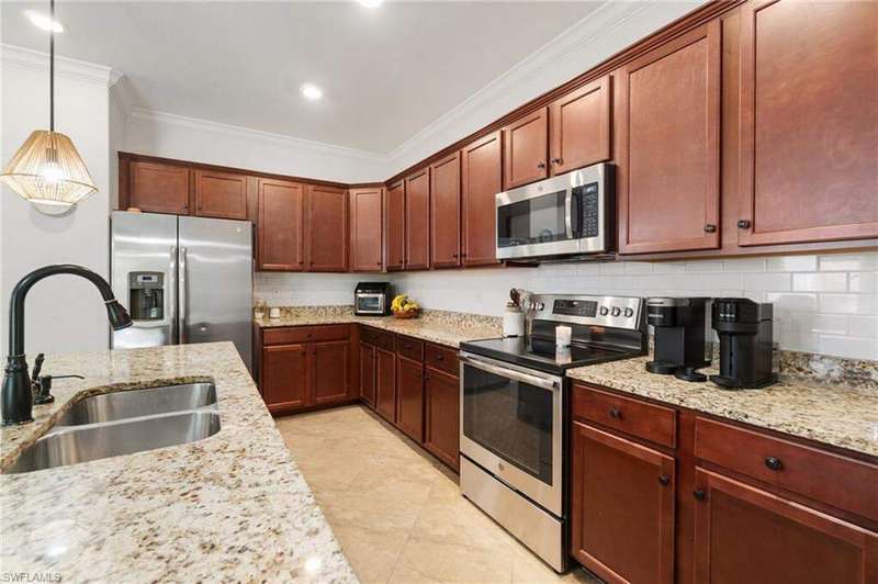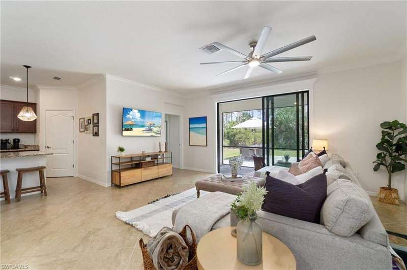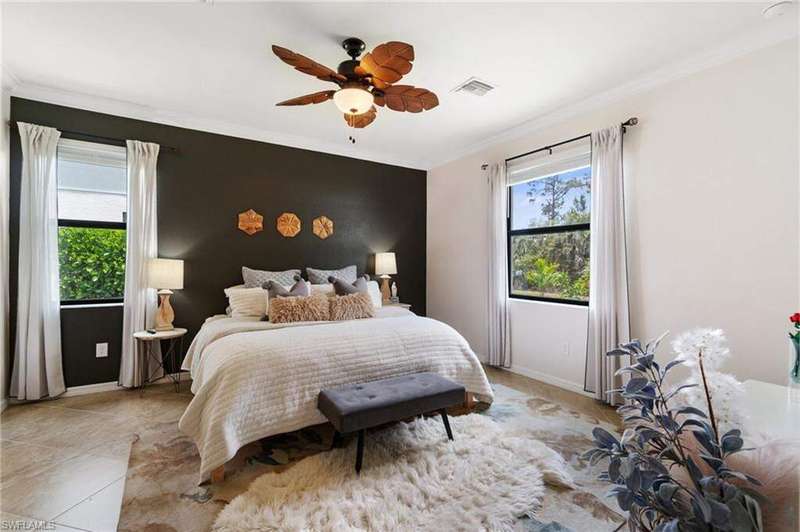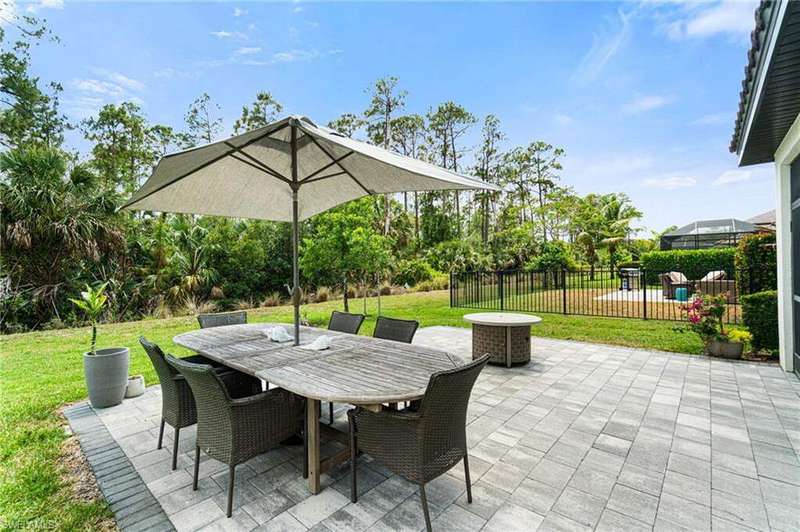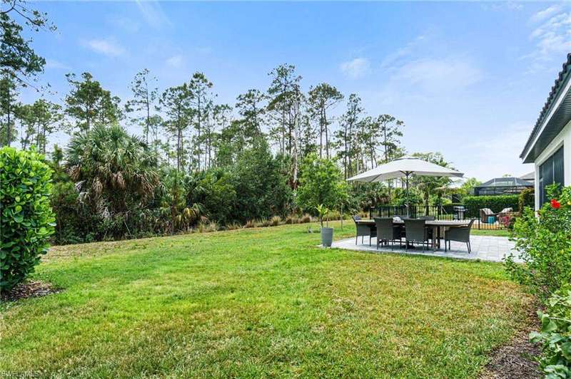 Experience privacy and tranquility in this beautifully upgraded single-family home, ideally situated on one of the most desirable preserve lots on a quiet cul-de-sac in Bent Creek Preserve. Built in 2019 and immaculately maintained, this home offers a rare combination of seclusion, space, and scenic preserve views-with no neighbors behind you and a generously sized backyard perfect for entertaining, relaxing, and with plenty of room for a pool! The extended brick paver patio enhances the outdoor living experience, making it feel like your own private oasis. Inside, this home is loaded with thoughtful upgrades and stylish finishes-elegant millwork, upgraded light fixtures and fans, sleek tile flooring throughout, granite countertops, stainless steel appliances, and custom upgraded closet doors add a refined touch to every room. Modern conveniences abound with features including a Ring doorbell, Tesla charging port, HVAC system upgraded with an air scrubber and UV light for enhanced indoor air quality, and a whole-house water filtration system, blending comfort, security, and efficiency into your daily living. The open-concept layout features a living room and dining area just off the kitchen, 3 bedrooms plus a flexible office/den with beautiful French doors, 3 full bathrooms, and an attached 2-car garage with an extended driveway. Located in North Naples within an A+ rated school district, Bent Creek Preserve offers incredible value with resort-style amenities and low HOA fees. Enjoy access to a luxury clubhouse with a stunning pool and spa, fitness center, billiards, tennis, pickleball, bocce, a children's play area, and more. Plus, residents benefit from exclusive gated access to Founders Square-home to restaurants, shops, and medical offices. This home isn't just move-in ready-it's a rare find on a lot that truly sets it apart.