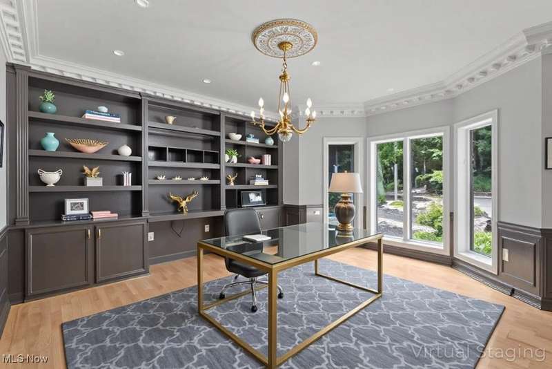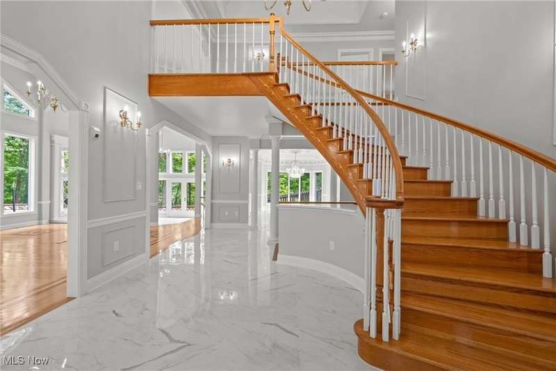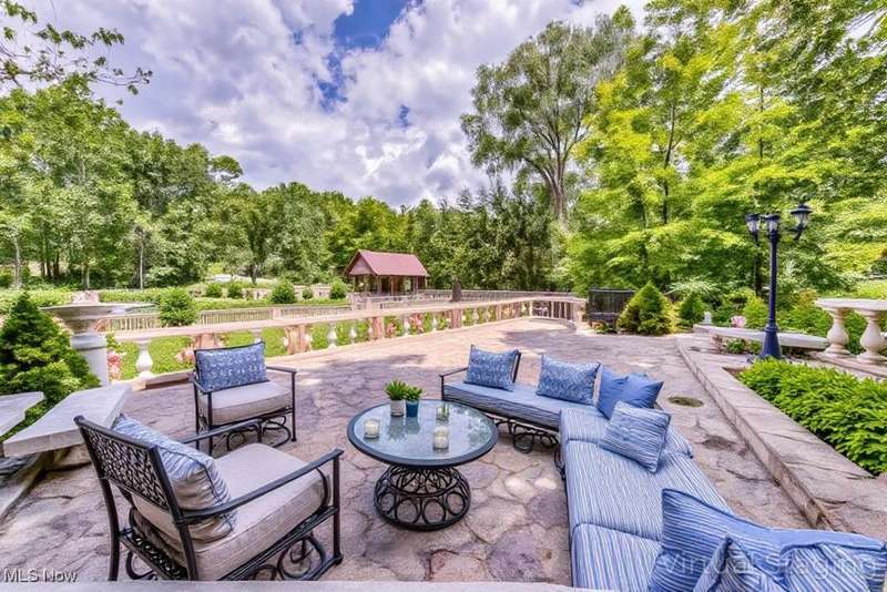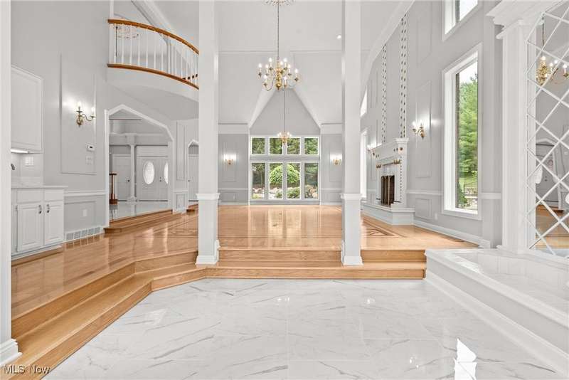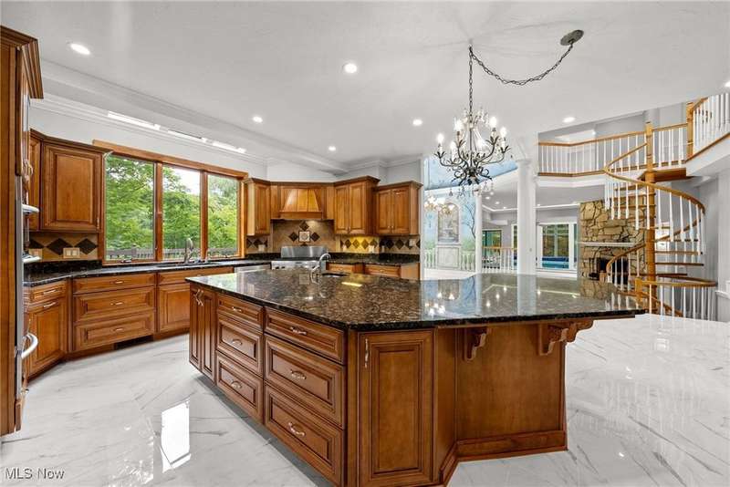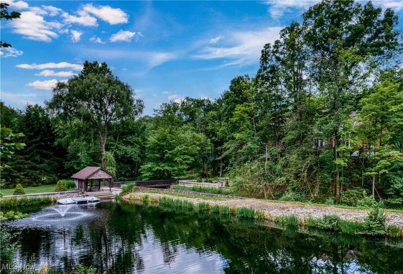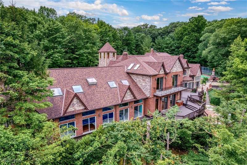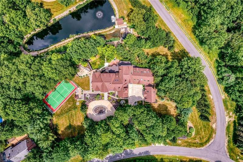 Resort-Style Living in a Magnificent Gated Estate! Experience the epitome of luxury in this stunning gated estate, featuring a Stone and Brick European manor set on over 3.5 acres, with picturesque views of a serene pond and lush landscape. Recently renovated within the past year, this light-filled home boasts over 10,000 square feet, designed perfectly for grand-scale entertaining and opulent living. As you enter, you'll be greeted by a dramatic foyer that leads into a magnificent two-story grand hall, complete with a stately fireplace and expansive windows that frame the breathtaking surroundings. The gourmet kitchen, a chef's dream, opens to the family room and is equipped with every amenity imaginable, featuring central island, stone countertops, stainless steel appliances, and a fabulous octagonal morning area. The spacious second floor offers two primary suites, each with fireplaces and luxurious updated bathrooms. One suite includes multiple balconies, a coffee bar, and walk-in closets, while the other boasts its own circular staircase leading to a viewing tower. Additionally, there are three more bedrooms, each with refinished wood floors and modern bathrooms. The walkout lower level provides an exceptional entertainment space, featuring a home theatre, full kitchen, bar, a billiard room with a fireplace, and a redwood sauna. Additional highlights include Commercial-grade mechanical systems, luxurious saltwater pool complex, first-floor exercise room or guest bedroom, 5+ car garage, guest apartment, and weather-sensitive skylights. The outdoor area is equally remarkable, offering multiple decks and patio spaces, an outdoor fireplace, a covered lanai, waterfall, stocked pond with a floating dock, a tennis court with an integrated refreshment station, and a circular motor court. This meticulously maintained home is ready for its new owner, awaiting those who appreciate the finest in resort-style living.