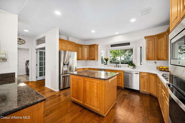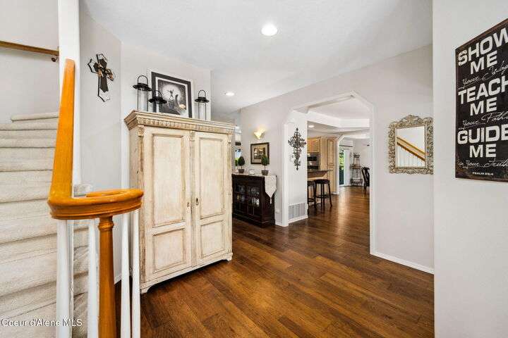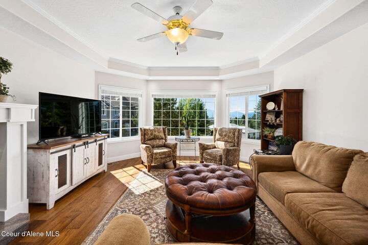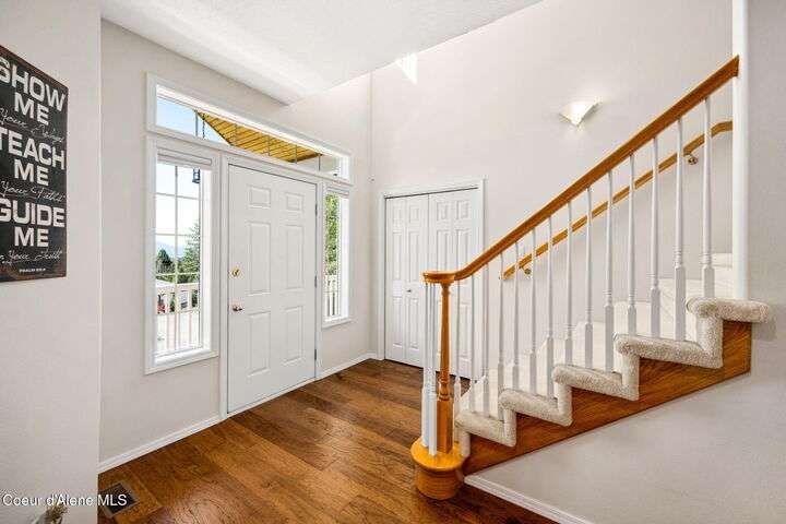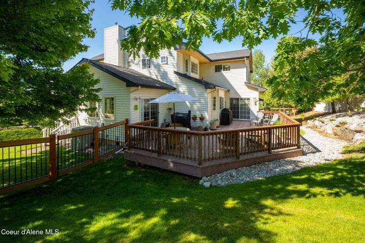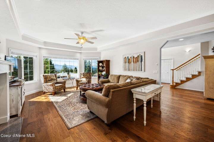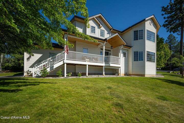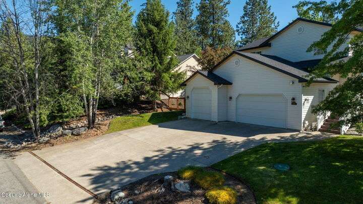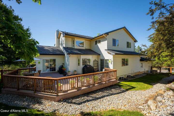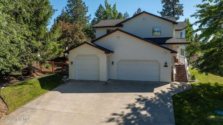 Located between picturesque Hayden Lake and charming Dalton Gardens, this 4-bedroom, 3.5-bath, 3,751 sq ft home is one of the best values in the area at an incredible price! Captivating views from front decks and oversized windows pair with a huge backyard deck for entertaining. The top floor master suite and two large bedrooms are perfect for keeping the family on one level. The master retreat includes a spa-like bath, walk-in closet, and serene city views. The main floor showcases stunning luxury engineered wood flooring throughout, along with an upgraded chef's kitchen featuring new stainless appliances and a center island that flows into the formal dining room, ideal for gatherings. This level also offers a large office that could convert to another bedroom. The lower level has a versatile game room with full bath and separate entrance, perfect for multi-generational living. Completing the home is a spacious 3-car heated garage. Additional features include generously sized bedrooms, an office, abundant storage, and an oversized 3-car garage with a 10-foot door, accommodating small RV or boat parking
