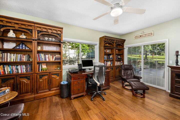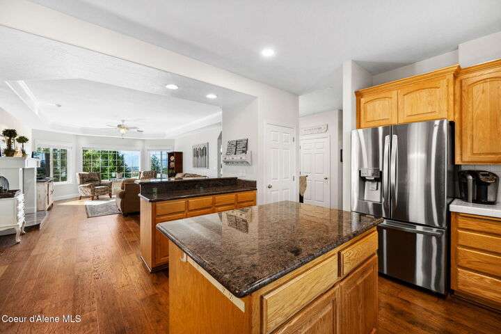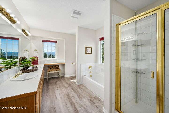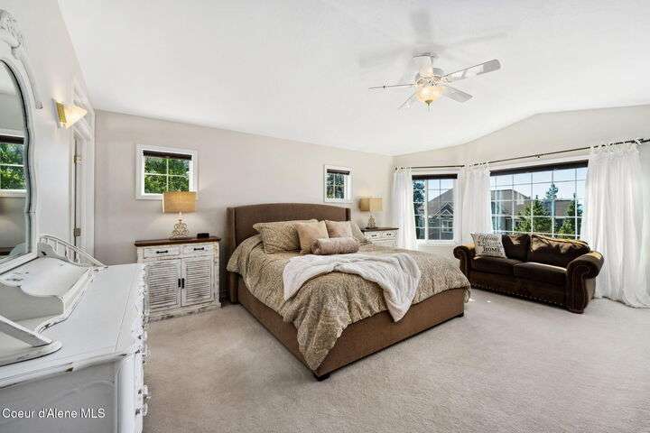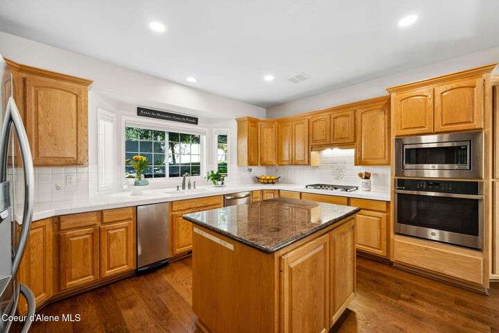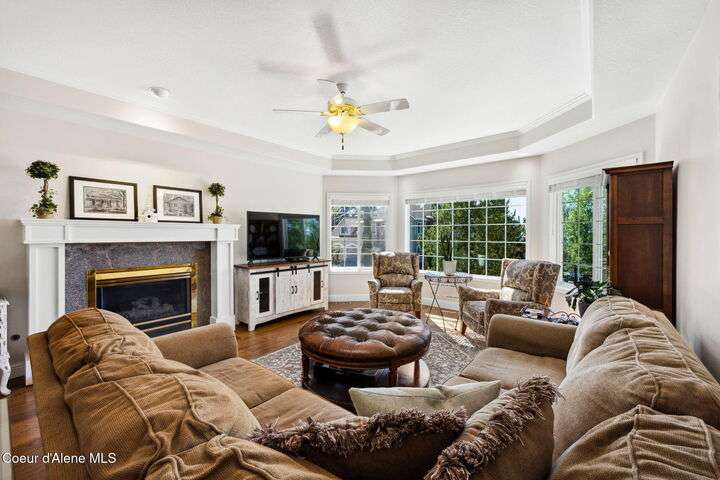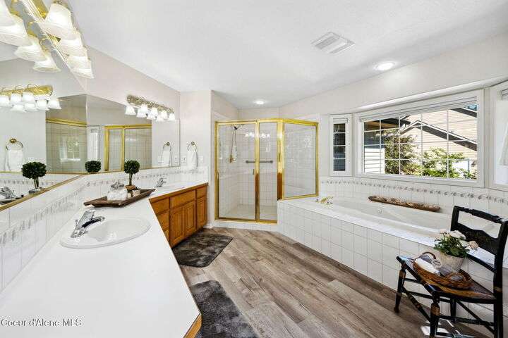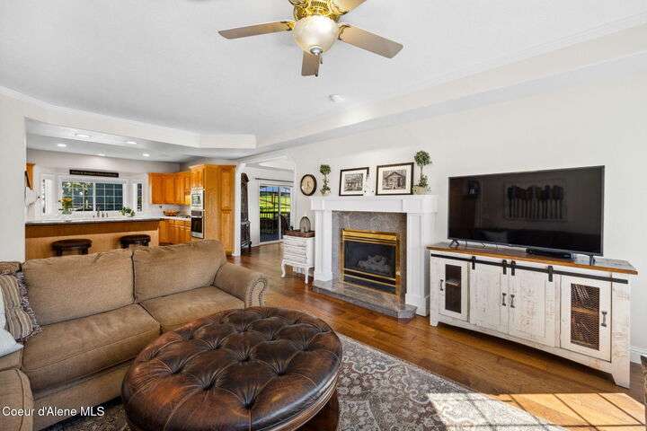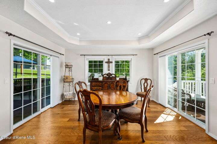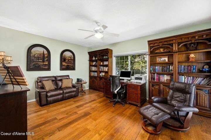 Located between picturesque Hayden Lake and charming Dalton Gardens, this 4-bedroom, 3.5-bath, 3,751 sq ft home is one of the best values in the area at an incredible price! Captivating views from front decks and oversized windows pair with a huge backyard deck for entertaining. The top floor master suite and two large bedrooms are perfect for keeping the family on one level. The master retreat includes a spa-like bath, walk-in closet, and serene city views. The main floor showcases stunning luxury engineered wood flooring throughout, along with an upgraded chef's kitchen featuring new stainless appliances and a center island that flows into the formal dining room, ideal for gatherings. This level also offers a large office that could convert to another bedroom. The lower level has a versatile game room with full bath and separate entrance, perfect for multi-generational living. Completing the home is a spacious 3-car heated garage. Additional features include generously sized bedrooms, an office, abundant storage, and an oversized 3-car garage with a 10-foot door, accommodating small RV or boat parking