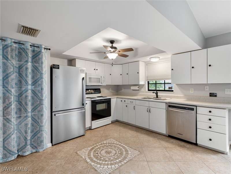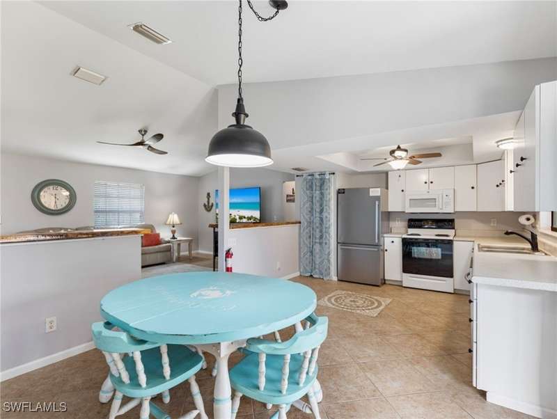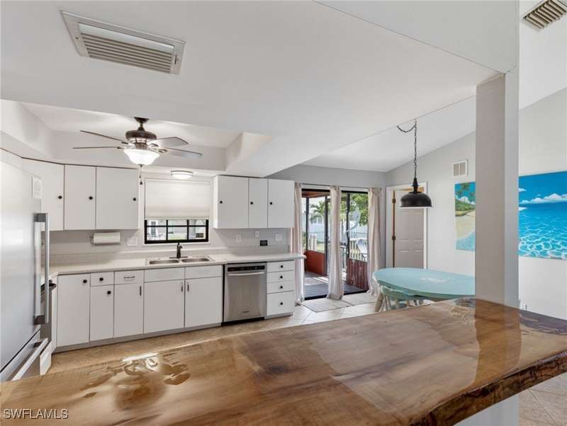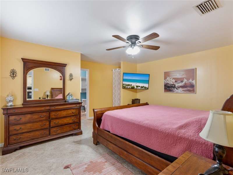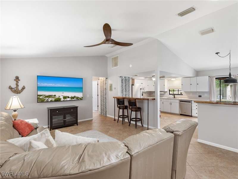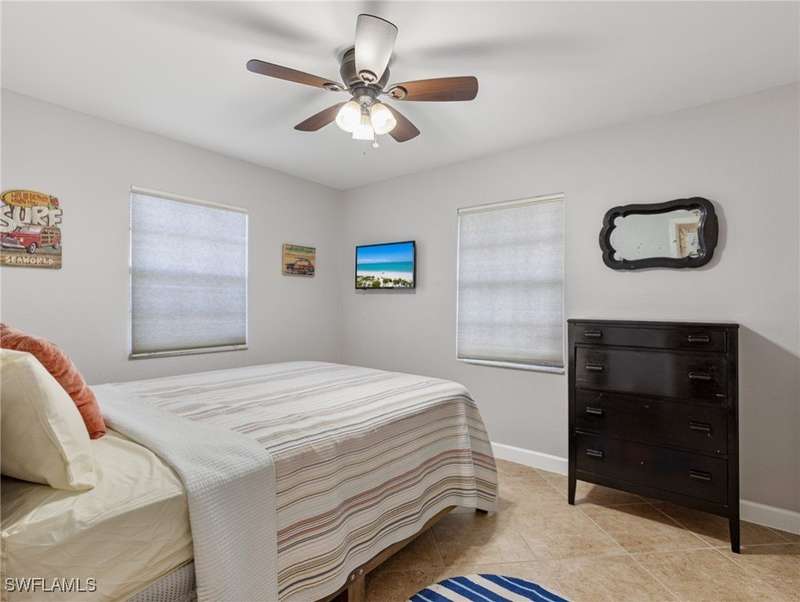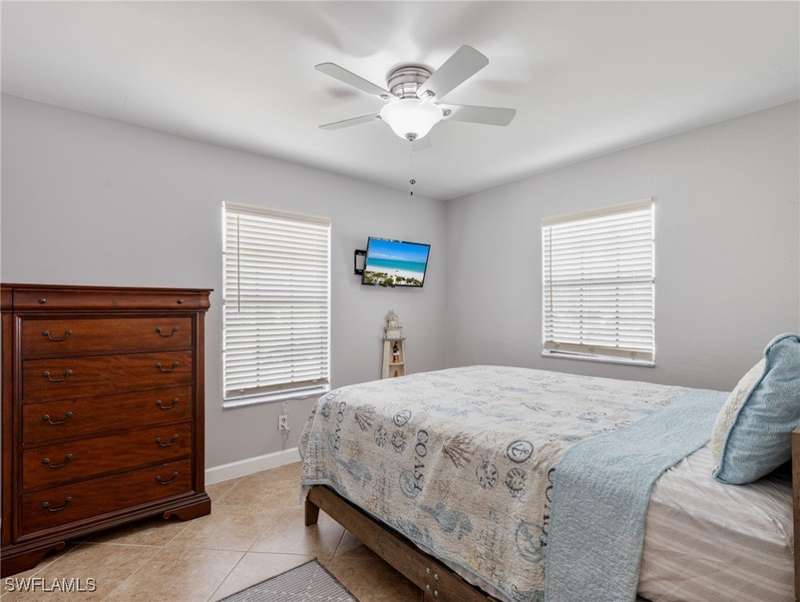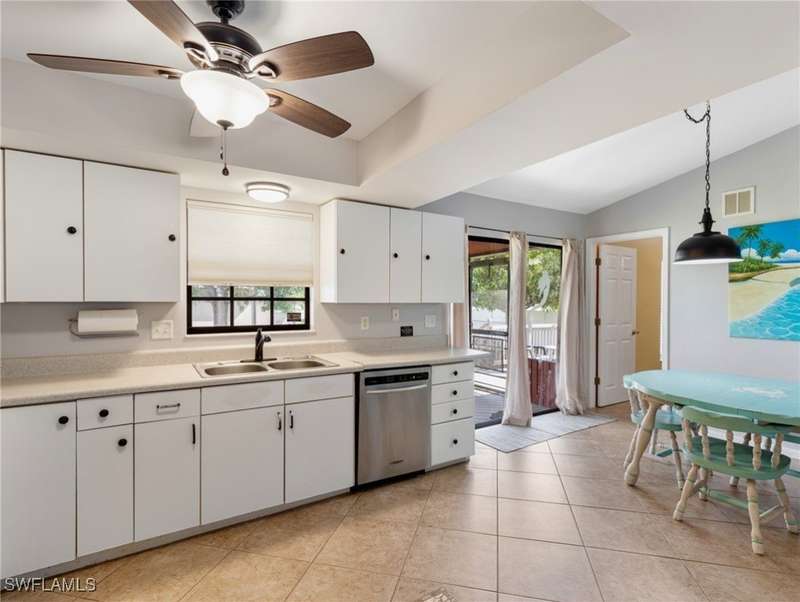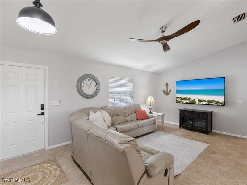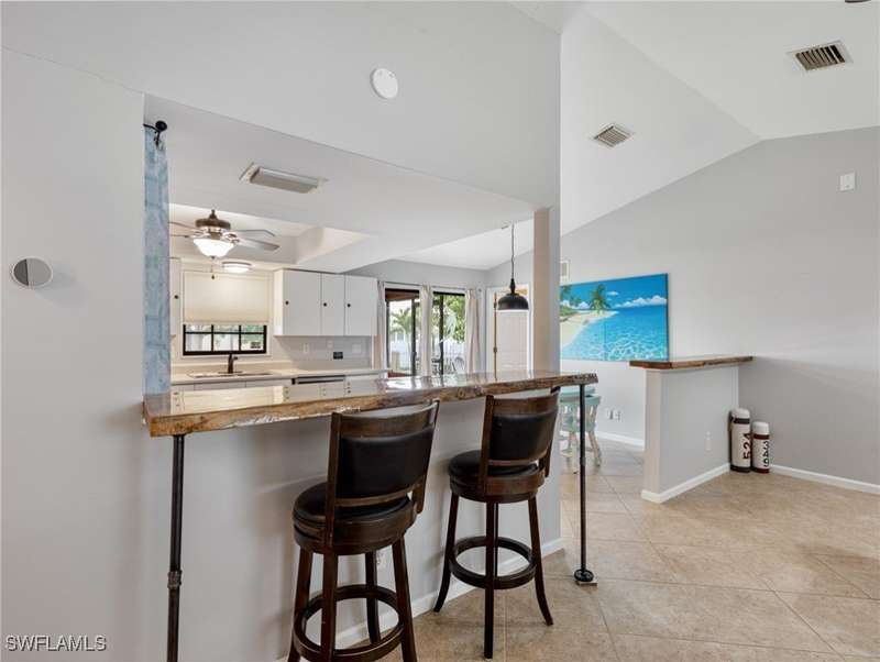 Now is your chance to own a great home in Cape Coral. The current owners used this as a seasonal retreat plus generated rental income when not in the home. Sold Turnkey, this 3 bedroom 2 bath home has tile that flows throughout. Split bedrooms for privacy, plus the primary suite has a seperate owners closet should you choose to treat as an investment rental. Large kitchen with new refrigerator and dishwasher, plus two Maple and Oak bar top sitting areas to gather the family. Expansive fenced backyard with Oak Trees, Triple Palms, Mango Trees, and lush landscaping. Plus, there is a screened porch and elevated sitting deck. Roof is 2023, AC 2024, Garage Door 2025. Assessments are paid in full - city water and sewer! Room for pool. You are now HOME!