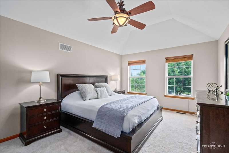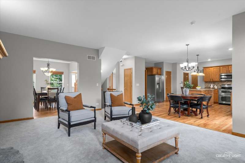Gorgeous move-in ready 5 bedroom home with full finished basement, 3 car - tandem garage & a private backyard retreat! Recent updates: New front door & sidelights (2025) HVAC (2023), roof (2018), basement egress windows (2018), new ejector pump (2020), ALL NEW carpet & freshly refinished hardwood floors, full interior professional paint! Also comes with a transferrable home warranty! Tucked in a quiet cul-de-sac with no backyard neighbors-enjoy treelined views and meticulously maintained landscaping & private stone paver patio. Inside, you'll appreciate the open flow between the kitchen and family room complete with volume ceilings and stunning stone fireplace with mantle. The kitchen shines with granite countertops, stainless appliances, recessed lighting & island. Upstairs, the primary suite is a true retreat with tray ceiling, walk-in closet and spacious bath featuring a soaker tub, separate shower and dual vanities. Located in the highly-rated Oswego 308 school district with nearby walking paths, lake, shopping, dining and super low HOA fees of just $35/month... there's nothing to do but move in!