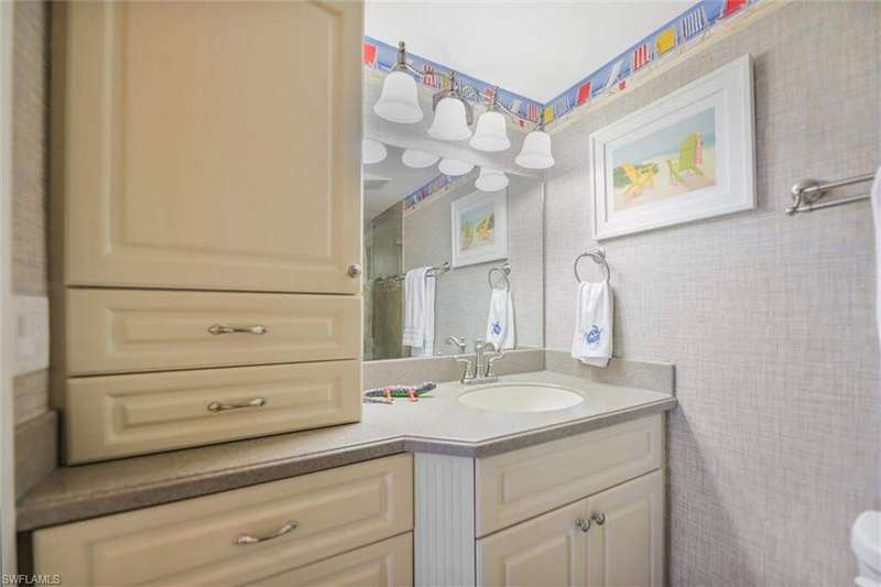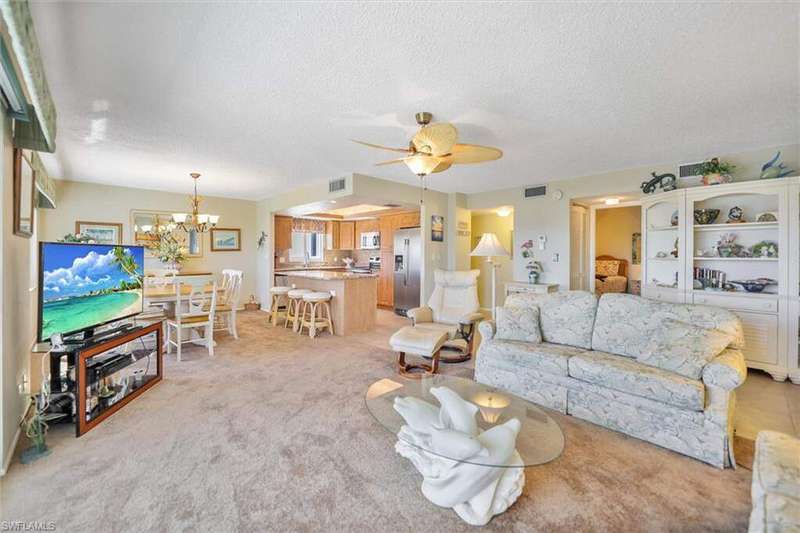Comfortable corner Condo with Stunning Bay Views - Prime Location! Enjoy island living at its best in this comfortable and bright corner unit offering panoramic bay views and maximum convenience. Located directly across from CVS, 7-Eleven, and Santini Plaza, you can grab your morning coffee, dine out, shop, or enjoy entertainment-all without needing a car. Marina access, restaurants, and essential services are just steps away. Property Features: Renovated kitchen by Cornerstone Builders featuring Corian countertops and stainless steel appliances- Washer & dryer (2021) and garbage disposal (2017)- New windows and sliding doors installed prior to Hurricane Ian- A/C replaced in 2020- Hot water heater replaced in Fall 2024- Electric hurricane shutters on lanai- Plantation shutters. Storage unit on the same floor- Covered parking- Strong, well-managed association- No special assessments to homeowners after Hurricane Ian. This condo combines peace of mind, incredible convenience, and a fantastic lifestyle in one of the most desirable areas on the island. Perfect for personal enjoyment, seasonal living, or investment, this unit is move-in ready and approved for short-term rentals, offering excellent income potential.