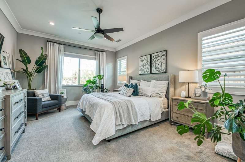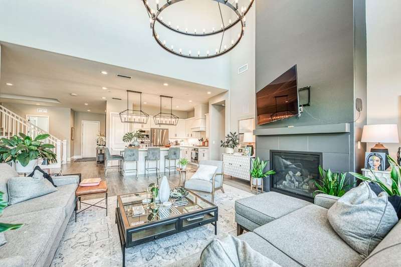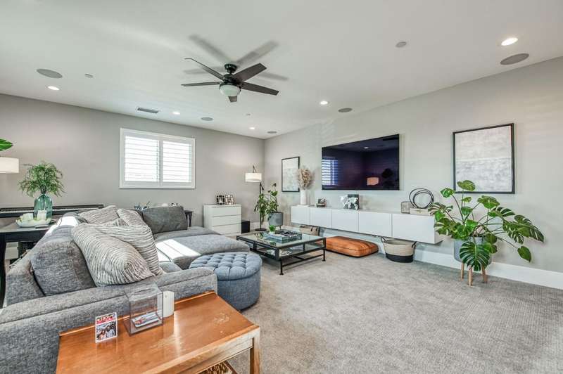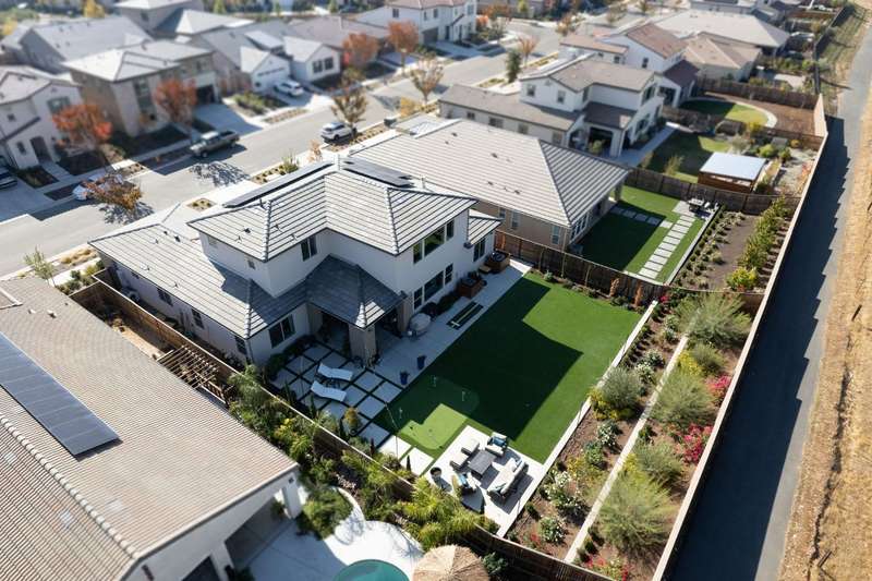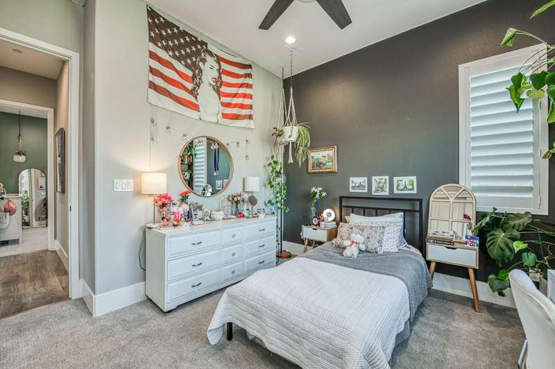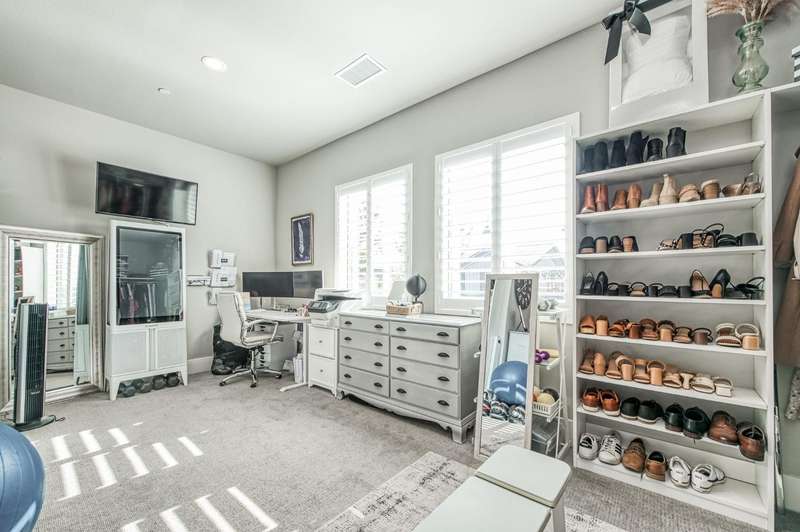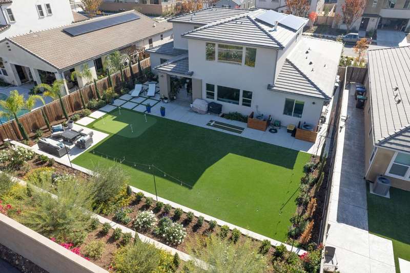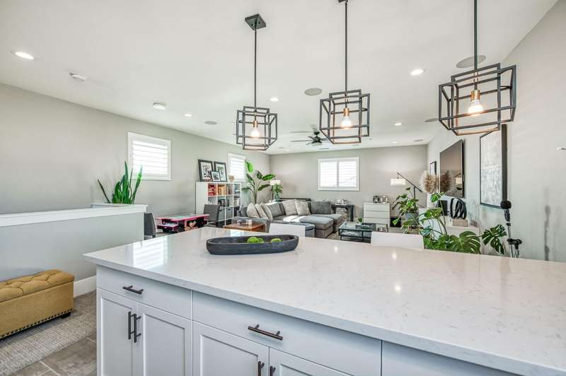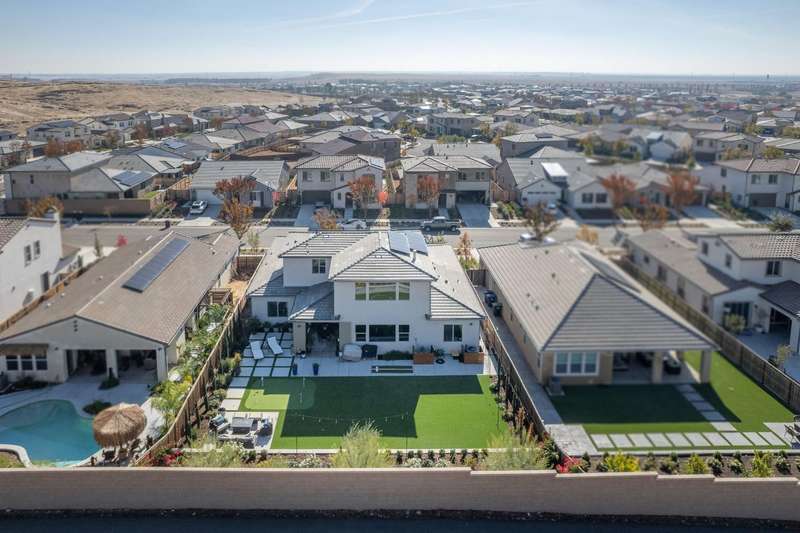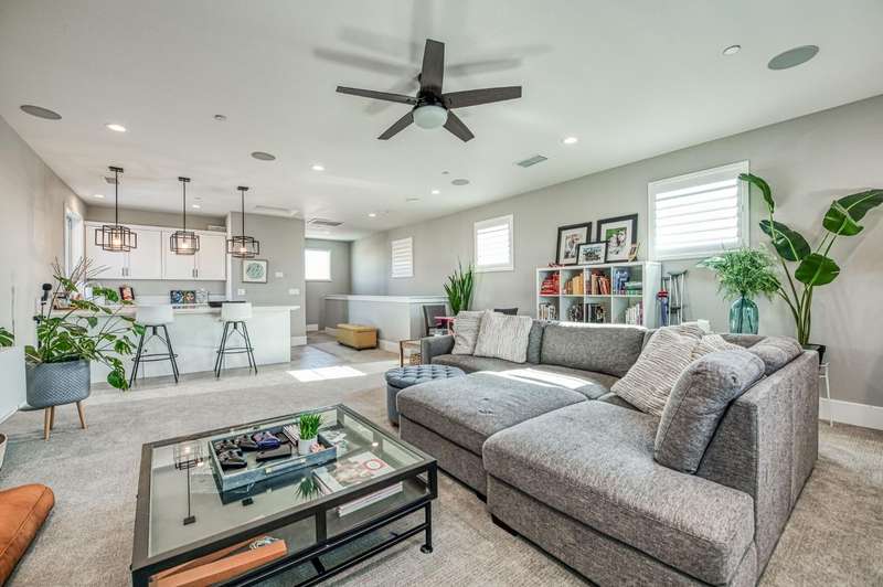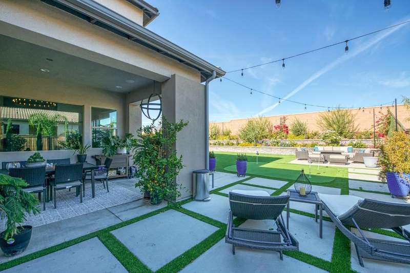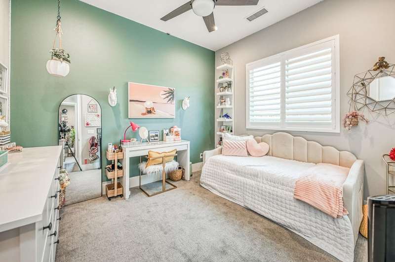 Welcome to your luxurious retreat in the heart of the award-winning Tesoro Viejo Community! This stunning, customized 3-bedroom, 3.5-bathroom home with a versatile loft and owned solar showcases exceptional craftsmanship and modern elegance. Step inside to a grand entry featuring a spectacular staircase, premium flooring, elegant lighting fixtures, and recessed lighting for perfect ambiance. The chef's kitchen is a dream come true, boasting stainless steel appliances, walk-in pantry, quartz countertops and a sprawling island with breakfast bar seating. This open-concept layout flows seamlessly from the kitchen to the spacious dining area and into the sun-filled great room, creating the perfect gathering space. The primary suite, located on the main floor, is your private oasis complete with a spa-inspired bathroom featuring a soaking tub, separate shower, and an expansive walk-in closet with bonus space ideal for a home gym or office. Two guest bedrooms share a full bathroom, while the upstairs loft offers incredible flexibility as a bonus living area, multi-generational suite, or media room, complete with a wet bar and full bathroom. Step outside to your private backyard retreat, highlighted by a covered patio, lush landscaping with synthetic grass, backed by open land perfect for relaxing or entertaining year-round. Enjoy the best of resort-style living at Tesoro Viejo, featuring a community pool, clubhouse, scenic parks, walking trails, and highly rated schools.
