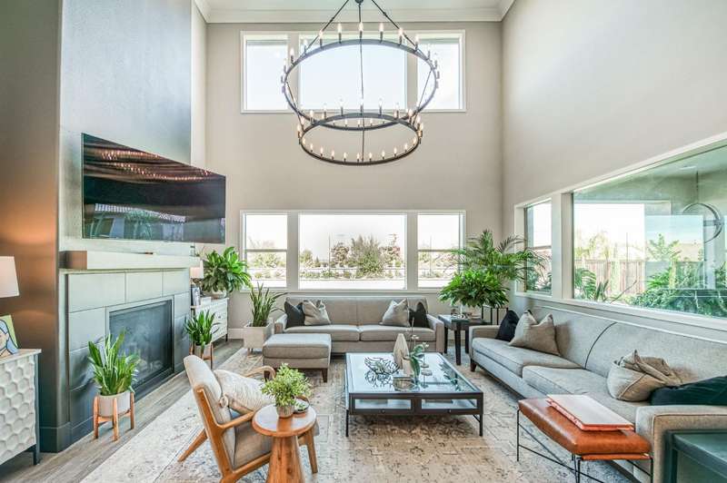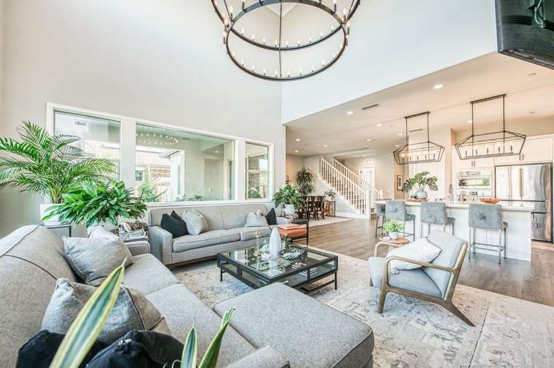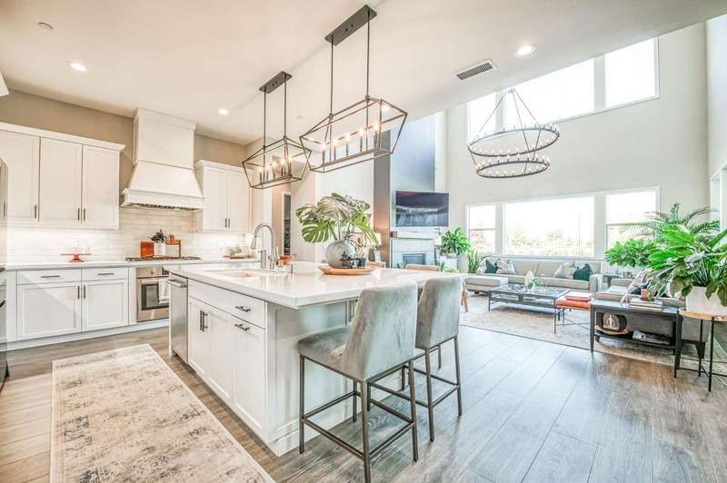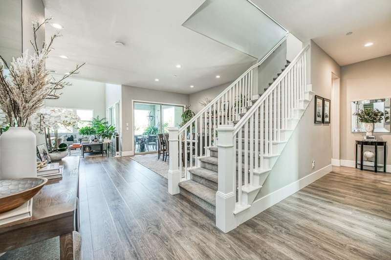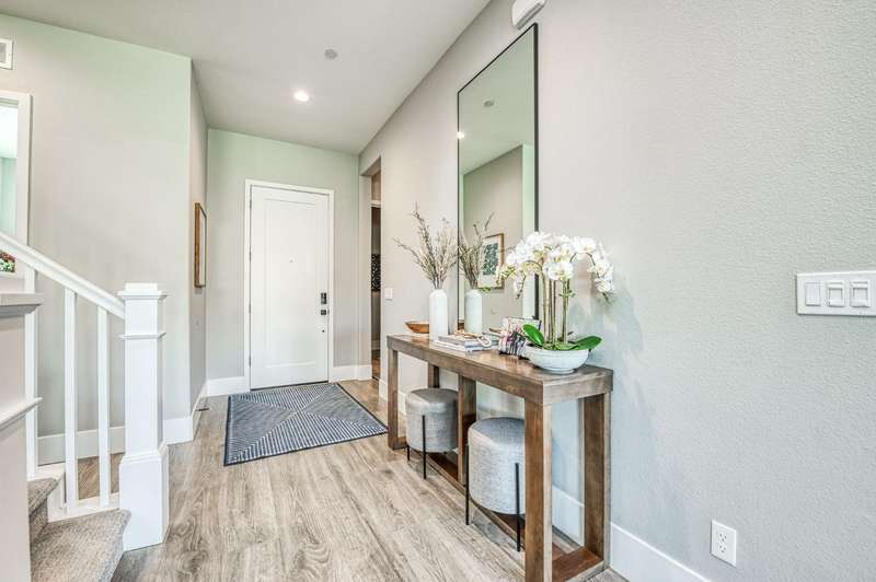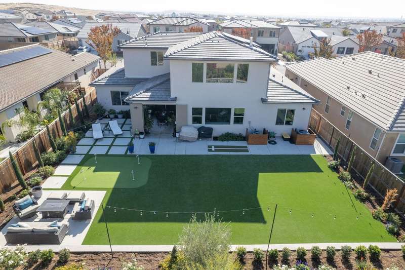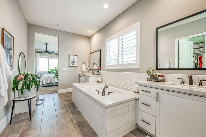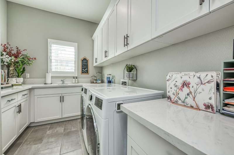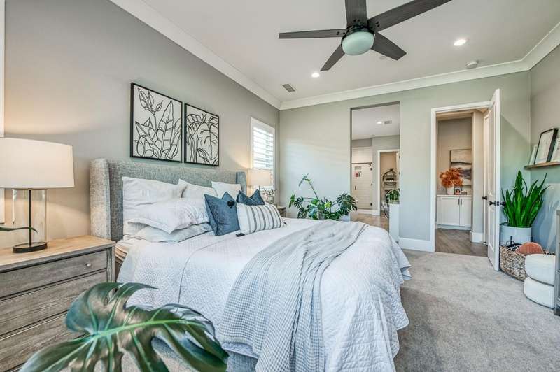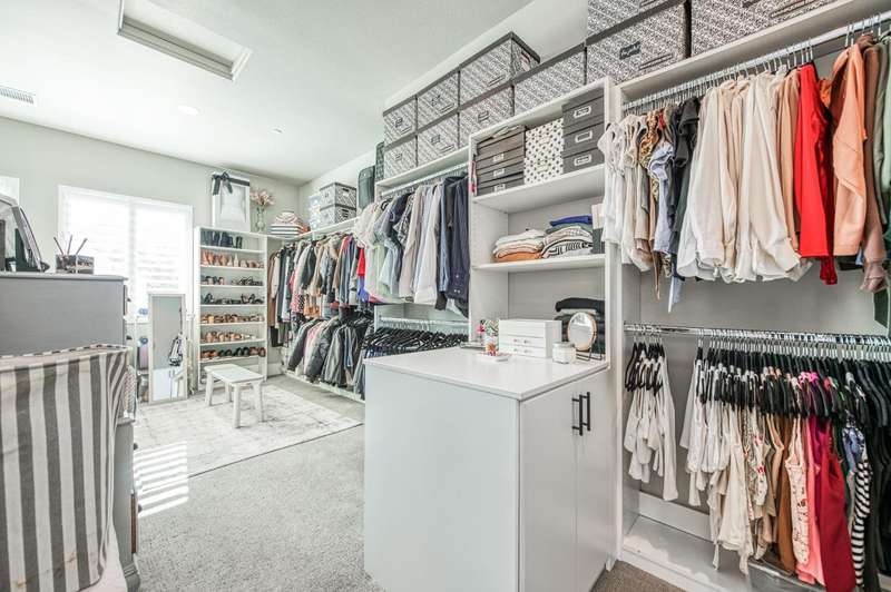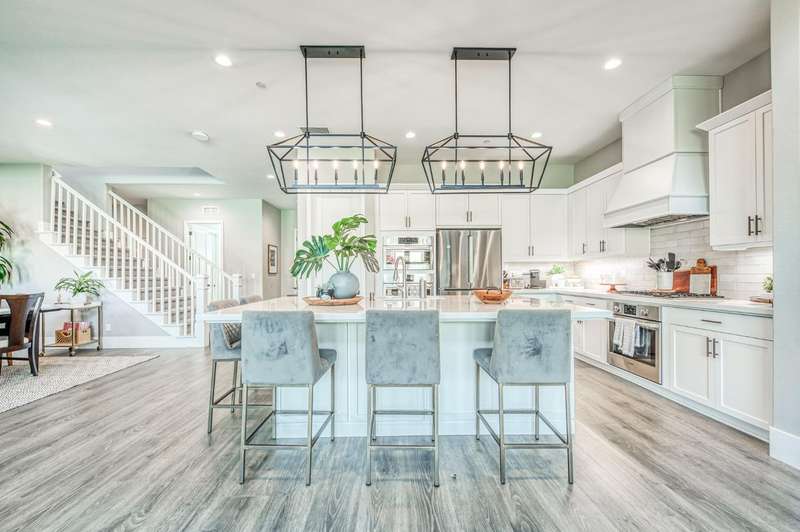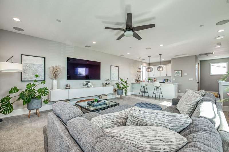 Welcome to your luxurious retreat in the heart of the award-winning Tesoro Viejo Community! This stunning, customized 3-bedroom, 3.5-bathroom home with a versatile loft and owned solar showcases exceptional craftsmanship and modern elegance. Step inside to a grand entry featuring a spectacular staircase, premium flooring, elegant lighting fixtures, and recessed lighting for perfect ambiance. The chef's kitchen is a dream come true, boasting stainless steel appliances, walk-in pantry, quartz countertops and a sprawling island with breakfast bar seating. This open-concept layout flows seamlessly from the kitchen to the spacious dining area and into the sun-filled great room, creating the perfect gathering space. The primary suite, located on the main floor, is your private oasis complete with a spa-inspired bathroom featuring a soaking tub, separate shower, and an expansive walk-in closet with bonus space ideal for a home gym or office. Two guest bedrooms share a full bathroom, while the upstairs loft offers incredible flexibility as a bonus living area, multi-generational suite, or media room, complete with a wet bar and full bathroom. Step outside to your private backyard retreat, highlighted by a covered patio, lush landscaping with synthetic grass, backed by open land perfect for relaxing or entertaining year-round. Enjoy the best of resort-style living at Tesoro Viejo, featuring a community pool, clubhouse, scenic parks, walking trails, and highly rated schools.