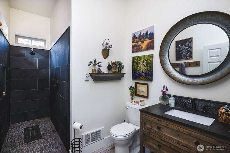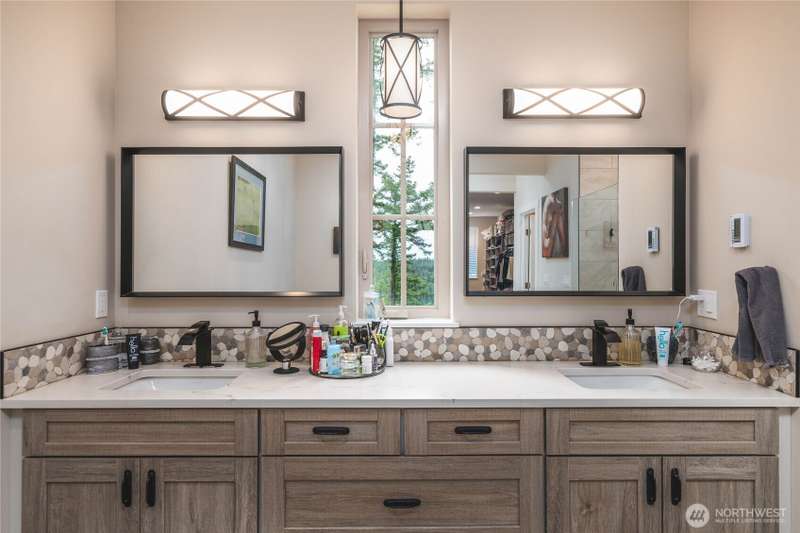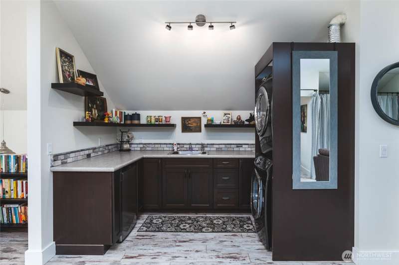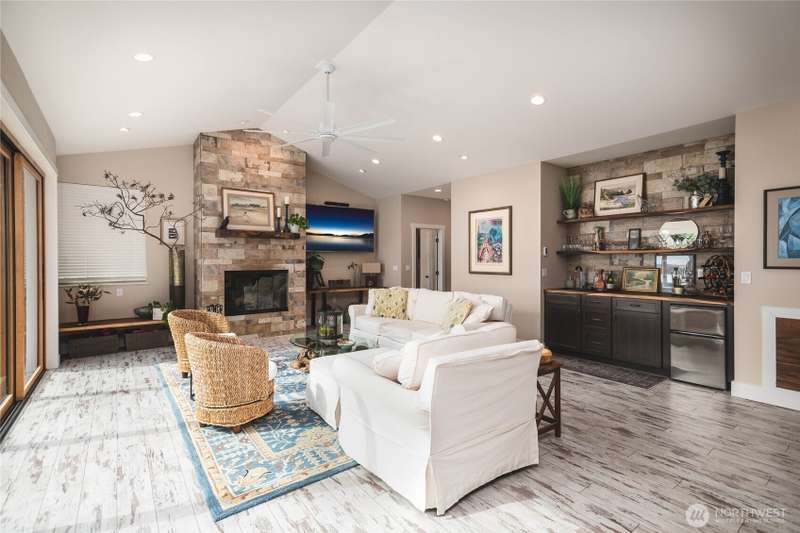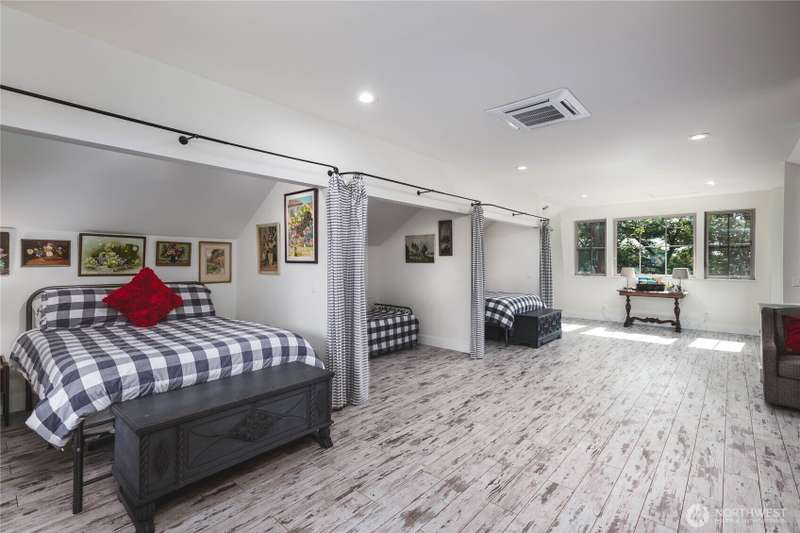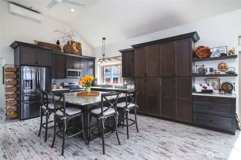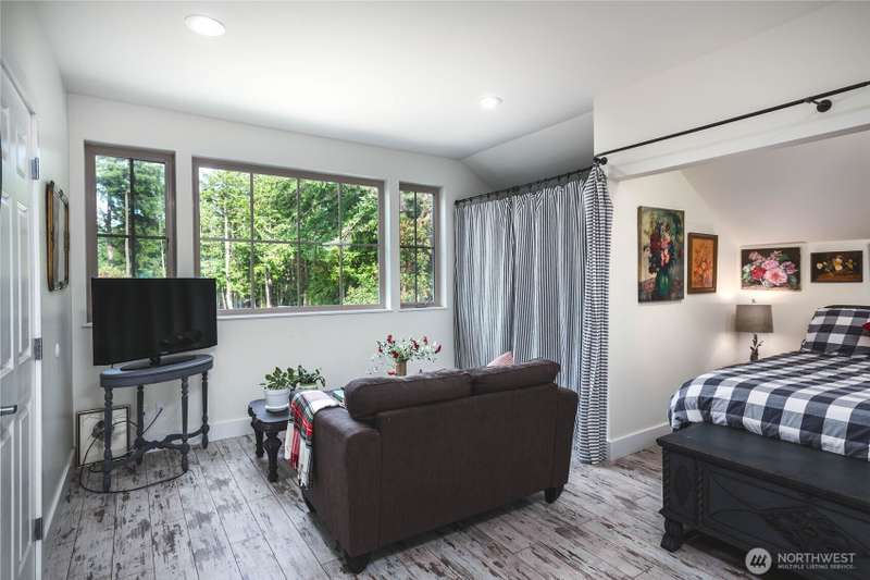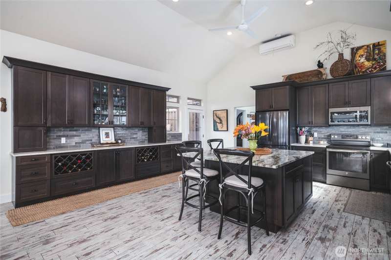 Secluded paradise situated at the top of Eagles Nest. At 5.85 acres, this magnificent property boasts almost a 360° view of the surrounding area. Water, mountain, island and valley views as far as the eye can see. Home features a spacious main level primary suite with a fabulous walk-in closet, as well as upper separate living quarters with living room, office area, 4 bed sleeping nooks, kitchenette, washer/dryer and 3/4 bath. Spacious kitchen/dining area is a chef's delight. Living room features a fireplace, wet bar and gaming area. Views from every room in the home! Outdoor firepit/picnic area with view! Subdividable into 2 lots, utilities in place. Room for a helipad! Be sure to view the video! This home is truly one of a kind!