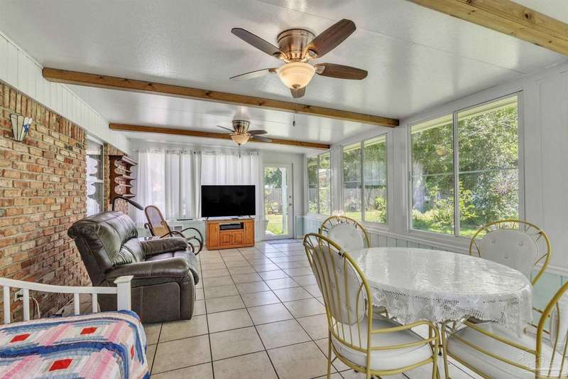 Charming 3BR/2BA home in desirable Pensacola neighborhood! This 1,424 sq ft home sits on a spacious 0.33-acre lot. Features include a split floor plan, bright living spaces, and a large backyard-perfect for entertaining or relaxing. Enclosed sunroom, detached workshop/garage in back yard, metal roof 2013, HVAC 2017, hot water heater 2016, windows replaced 2013. Don't miss this great opportunity!