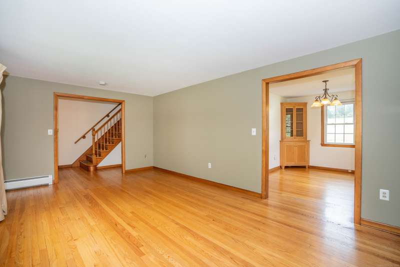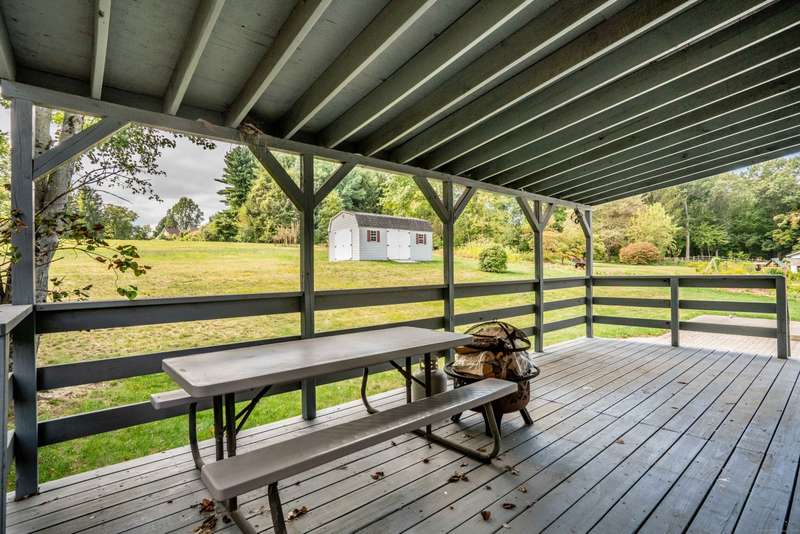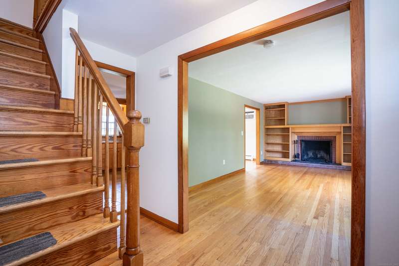 The perfect balance of comfort, charm, and thoughtful design describes this home to a T. Set on 1.4 beautifully manicured acres, the property greets you with an expansive newer driveway, elegant paver walls and walkway with granite steps, and lush, professionally landscaped grounds that create a warm welcome. The spacious covered deck is ideal for outdoor entertaining or quiet evenings at home, while the adjoining patio-already wired for a hot tub-offers a wonderful spot to relax and unwind. Inside, freshly painted rooms feel bright and inviting. The front-to-back living room features custom built-in bookshelves, a cozy wood-burning fireplace, and direct access to the deck, creating an easy flow for everyday living. The updated maple kitchen boasts modern appliances, generous storage, and a functional layout, while gleaming hardwood floors run throughout the main level. A convenient first-floor laundry room makes daily routines effortless. Upstairs, you'll find four comfortable bedroom