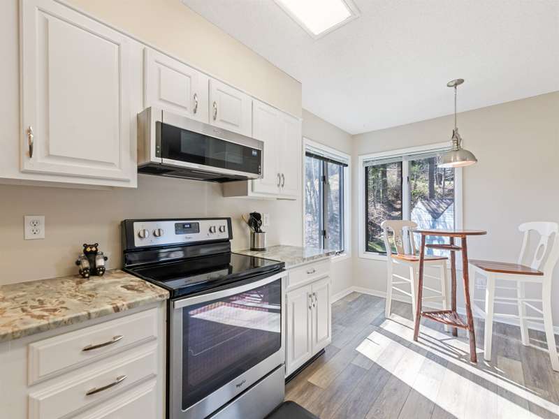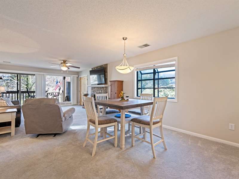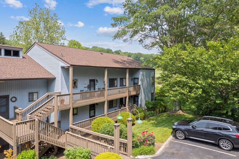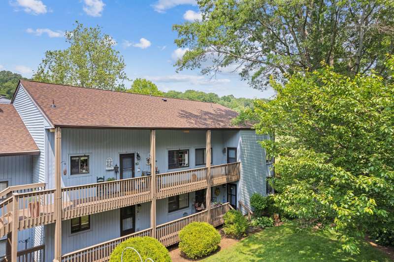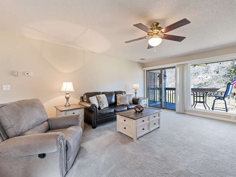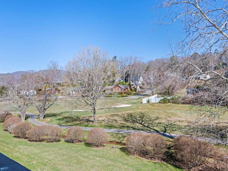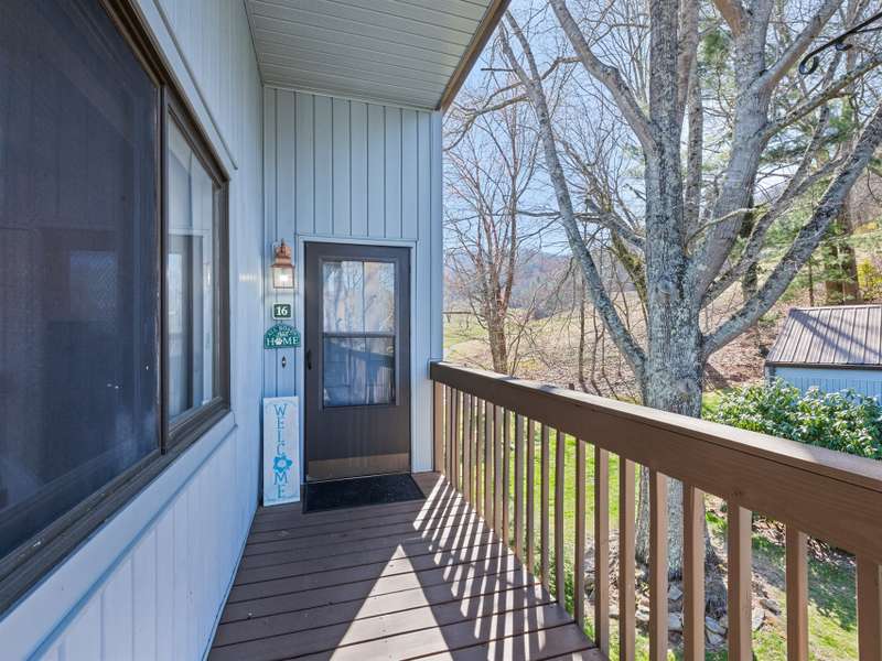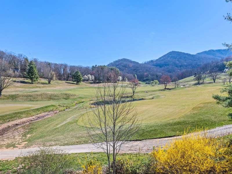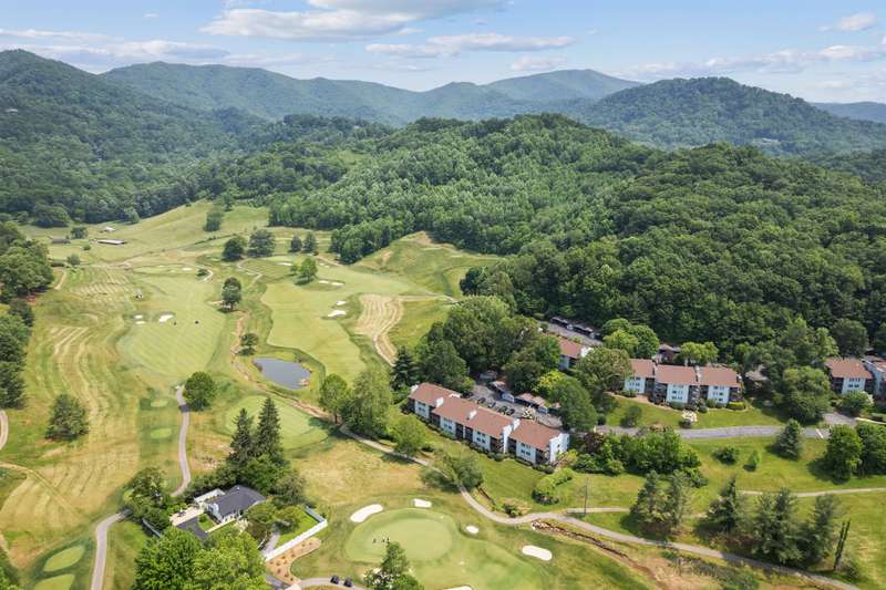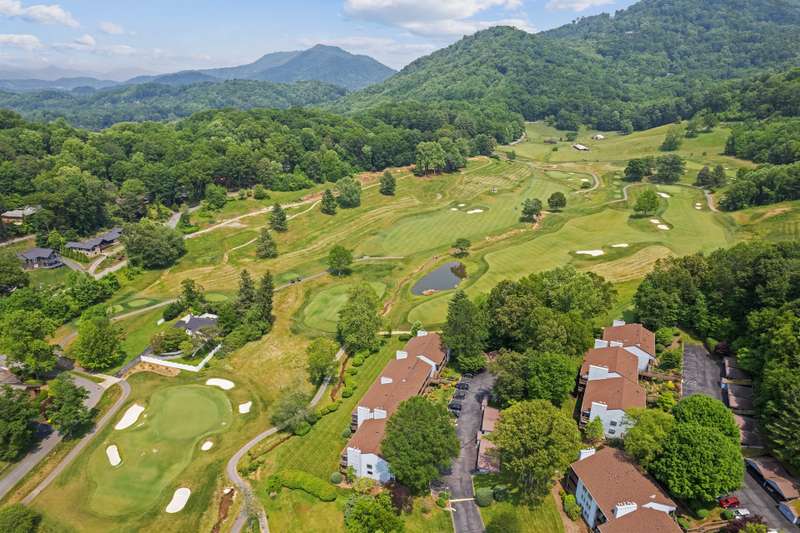 Mountain Life at its finest: 4-season views, modern comfort, unmatched location! Nestled in charming Waynesville this beautifully updated end-unit offers a perfect blend of comfort, style, and breathtaking scenery. Arguably the best vantage point in the entire complex, bask in panoramic views at the newly renovated Raines/Hilton Golf Club from your private balcony. Spacious great room features a cozy wood FP, built-in wet bar, and sliding glass doors leading to the balcony creating an ideal space to entertain & relax. The modern kitchen boasts granite countertops and SS appliances. The primary suite includes its own access to the deck through sliding doors, while both bathrooms have been tastefully upgraded with tile, vanities, lighting & new toilets. Fresh interior paint throughout enhances the bright, openness, and every window has a stunning view. Additional highlights: Separate laundry room; ample closet storage; detached carport, and access to a community clubhouse w/ heated pool.