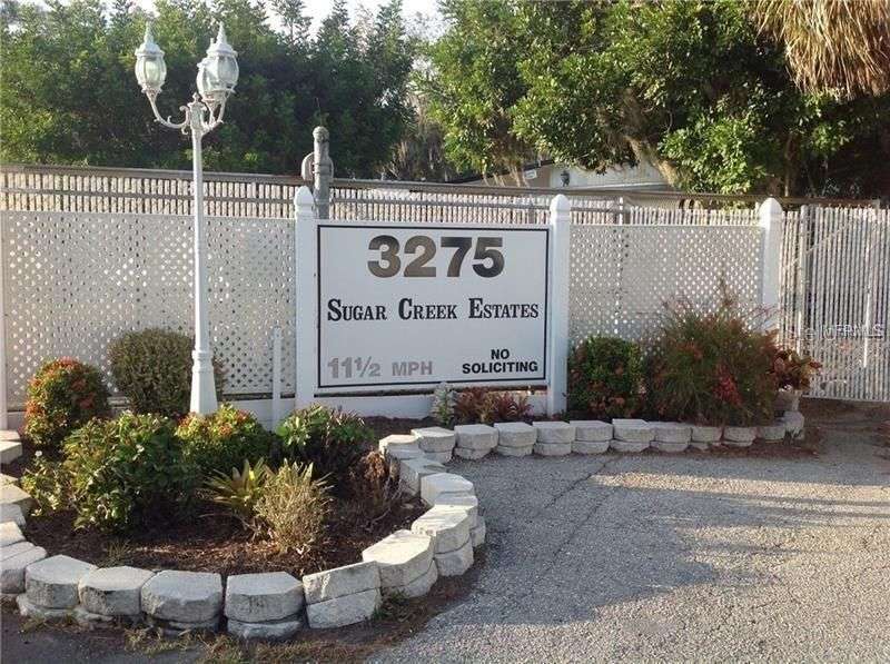 DOUBLE WIDE MOBILE HOME in active 55+ community. FIXER-UPPER IS JUST WAITING FOR YOU! One bedroom, one bathroom. Screened front porch. Appliances included. Inside laundry at the end of the living room. Central A/C (2018). SOLD IN AS-IS CONDITION FOR CASH ONLY. SUGAR CREEK ESTATES is a resident run co-op. Amenities include a clubhouse, pool, shuffleboard, and plenty of activities during the winter season. Enjoy this community's proximity to the River Links Golf Course and the Braden River. HOA FEES of $550 each quarter include internet, cable, water, sewer, trash, & grass mowing. A CREDIT SCORE OF 750 is required to purchase in this community. Sorry, this is not a dog lot.