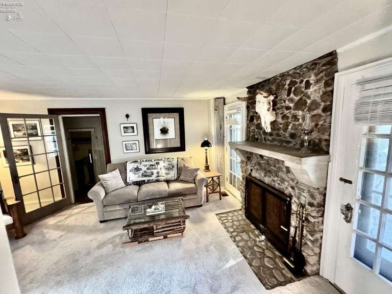 Looking for a CHARMING COTTAGE LAKEHOUSE 3 houses from Lake Erie with Lake Views?Live every day like you're on vacation in this adorable 3-bedroom, 2-bath cabin nestled just three houses from the sparkling shores of Lake Erie. Located at the entrance of The Cliffs and Miller Ferry on Catawba Island, this cozy retreat offers the perfect blend of rustic charm and lakelife serenity.Step onto the expansive front porch and take in breathtaking views of the lake the ideal spot to enjoy both sunrises and sunsets. Relax in the hammock, sip your morning coffee, or gather with friends as the lake breeze rolls in. Inside, the inviting living room features a stunning natural stone fireplace crafted from the native ground, creating a warm and welcoming atmosphere year-round. Each of the three bedrooms offers comfort and privacy, while the two full bathrooms provide convenience for guests and family alike. Enjoy the huge backyard boosting of serene nature.Enjoy all that Lake Erie life has to offer with the perfect location of this home being minutes from Entertainment for all ages. Twin Oast, Gideon Owen Winery, The Orchard, MIller Ferry to the Islands of Put in Bay, Kelley's Island, Cedar Point, Fishing, Beaches and CIC (membership required).