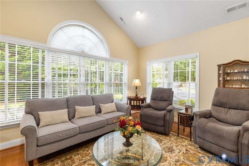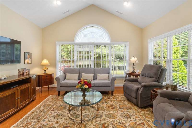 ""A Rare Opportunity to makes this perfectly situated home yours. Placed perfectly in the complex directly accross from mailboxes, visitor parking and the fabulous clubhouse, you'll find easy living here at Trellis Crossing. Stepless entries throughout make access a breeze. An open floorplan provides for great entertaining spaces and includes a large eat-in kitchen with all appliances conveying, a formal dining area and a great room with fireplace. The kitchen offers ample cabinetry and counter space for the most industrious cook and includes a pantry, plenty of space for informal dining and access to the laundry room and garage. The bright and sunny Sun room with hardwood floors can expand your more formal living spaces, or close it off with the French doors and make it your private office, spare bedroom or just a place to get away from it all. You'll love the two very generous bedrooms, each with huge walk-in closets and access to their own bathrooms. The garage can easily accomodate two large vehicles and includes built-ins for the """"handyman"""" in you as well as an extra refrigerator to keep all the drinks cold! Just steps away you'll enjoy the beautiful clubhouse available for large gatherings or the perfect space to meet friends for bridge, mahjong or just an old fashioned tete-a-tete! You'll find a full kitchen here and a well-equiped gym to help keep you young. The convenience is hard to beat with easy access to Short Pump, Stony Point and Gayton Crossing. All appliances and two 4 month old Lg Smart TV's also convey. Be sure to take a tour and think of the possibiities - this could be YOUR next home!""