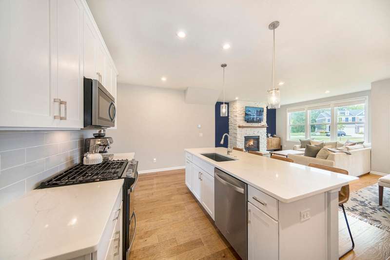 Welcome to 2867 Fairgrove Crescent - where Ann Arbor living meets low Pittsfield Township taxes! This stunning end-unit townhome is filled with natural light thanks to extra windows & an open-concept design that makes everyday living & entertaining effortless. Step inside to find a gorgeous kitchen with quartz countertops, soft-close drawers, & full-front cabinetry that blends function with beauty. The living room is anchored by a floor-to-ceiling stone fireplace, the perfect cozy centerpiece. Upstairs, the oversized primary suite offers both a bedroom & an attached sitting area an ideal retreat for work, relaxation, or reading. The spa-inspired primary bath features a frameless glass shower, quartz counters, & a fully tiled shower with an upgraded shower floor. Convenient second-floor laundry makes daily routines a breeze. Two additional bedrooms & a full bathroom round out the upper level. Outside, enjoy the perks of maintenance-free living the HOA covers exterior care & yard work.