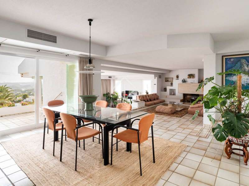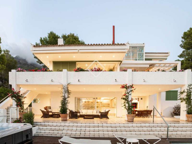 Located in the heart of the lush Altea mountains, this extraordinary villa is an architectural gem where design, elegance, and comfort merge in perfect harmony. With a generous layout and meticulous design, this property offers a sophisticated and serene lifestyle in an unparalleled natural setting. Upon arriving at the property, we are welcomed by a private street with five guest parking spaces, a unique feature that emphasizes privacy and comfort. Two enclosed parking spaces also guarantee complete security and convenience for residents. From the first step inside, the sense of luxury is evident. The exterior gardens, carefully designed and in harmony with the Mediterranean landscape, foreshadow the beauty that unfolds inside the property. One of the most distinctive elements of this residence is its glass-enclosed interior garden , a structure that floods all spaces with natural light and creates a warm, welcoming atmosphere in constant dialogue with nature. The main entrance is located on the central floor , where the spaces open up majestically. Two designer living rooms, one designed as a formal dining room and the other as a leisure area, invite you to share unforgettable moments with family and friends. On this same level, a spacious and bright office offers the perfect space for teleworking or enjoying a private reading and study corner. The master suite , also located on this floor, is a true oasis of peace. With an elegant en suite bathroom and top-of-the-line finishes, it guarantees privacy, luxury, and complete relaxation. The kitchen, fully equipped with high-end appliances and premium finishes, is the heart of the home. From here, you can access a terrace with stunning views of the Mediterranean Sea, ideal for enjoying breakfast at sunrise or a quiet afternoon snack at sunset. On the upper floor , the villa offers a layout designed for comfort and privacy. Three spacious and bright bedrooms adapt to the needs of the entire family. One of them stands out for its private living room and en suite bathroom , creating a unique retreat for its occupants. The lower floor reveals a third living room with direct access to the main terrace, where a spectacular pool becomes the centre of outdoor living. This space, with open views of the mountains and the natural surroundings, is perfect for both cooling off during the warmer months and hosting unforgettable evenings.