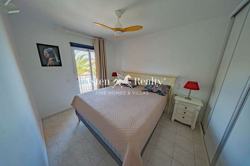 In the private area, there is a large master bedroom with its own 3 m2 balcony, offering partial views of the ocean and the island of La Gomera. The second, smaller bedroom is ideal as a children’s room, guest room, or home office.