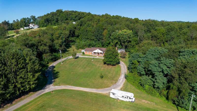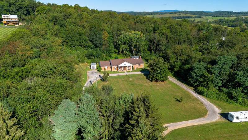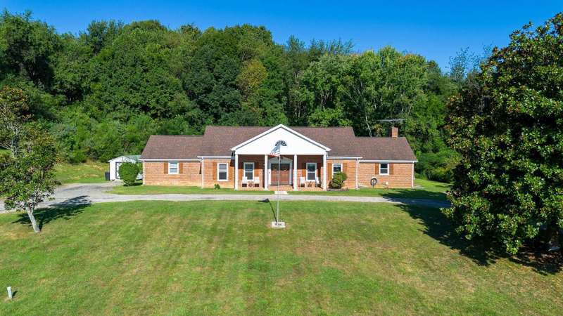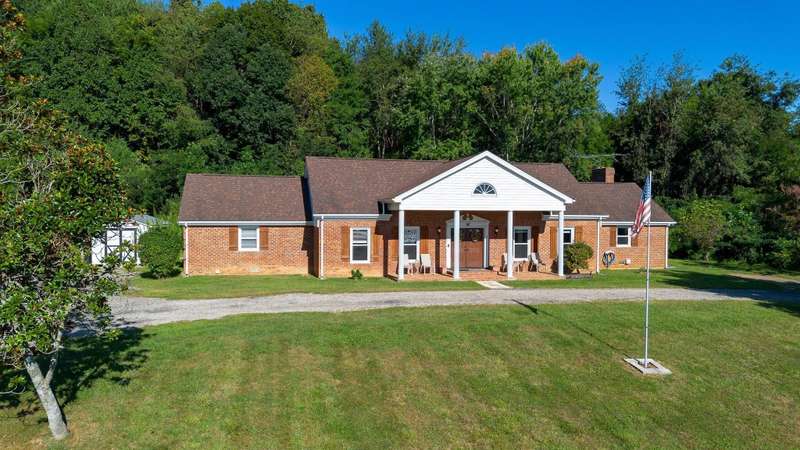 Welcome HOME to a perfect blend of space, setting, and charm! This classic brick rancher sits on 7 acres in Riverheads Country, perched high with a large front porch and stunning mountain views. Offering 2,500+ sq ft, the layout includes 2 family rooms (one lodge-style with fireplace), 4 bedrooms, and 2 baths-plenty of room to spread out. Out back, enjoy a private yard and woods-ideal for trails, treehouses, or peaceful evenings outdoors. Located in the historic village of Greenville, convenient to I-81 yet tucked in a serene country setting. A rare find-make it yours!