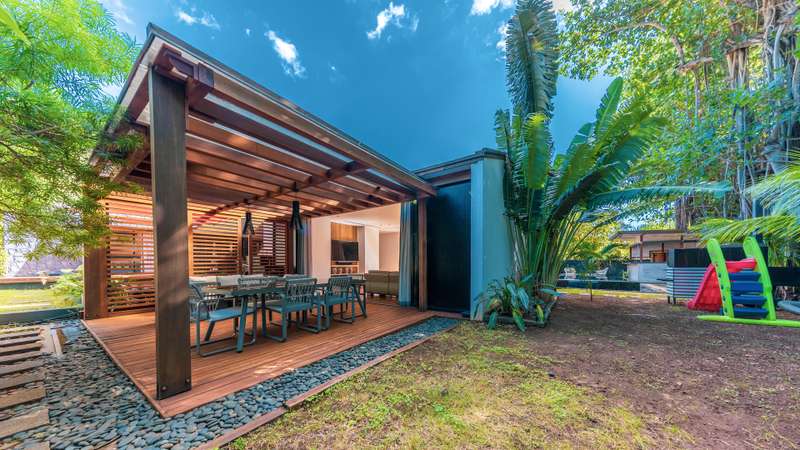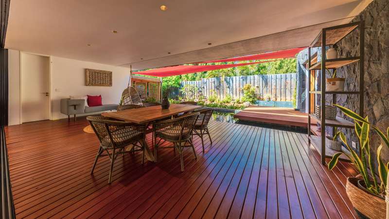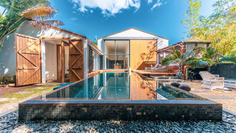 Located in the exclusive residential area of Pailles, this contemporary villa for rent embodies high standards and understated elegance. Designed for a discerning clientele, it blends modern design, advanced technology, and ultimate comfort in a secure environment. Built on a 1,266 m² plot, this spacious and light-filled property offers a rare quality of life in Mauritius. Ground Floor – Seamless Living & Comfort: - Three generously sized bedrooms, two of which feature en-suite bathrooms - An additional independent bathroom - Main modern kitchen fitted with premium appliances - Secondary kitchen ideal for staff or entertaining - Laundry room and storage area - Large covered veranda, perfect for outdoor dining or relaxing moments First Floor – Guest & Work Space: - Comfortable guest bedroom, ideal for visitors - Private office, perfect for remote work, reading, or quiet meetings Features & Amenities: - The villa is equipped with a full home automation system: smart control of air conditioning, lighting, security, and more - High-quality materials (wooden flooring, large glass openings, premium finishes) create a refined yet welcoming atmosphere Outdoor Areas – Wellness & Natural Elegance: - Private swimming pool surrounded by landscaped gardens - Fully equipped gym - Decorative pond with ornamental fish, adding a zen touch to the garden - Covered carport for two vehicles + two additional parking spaces Located in close proximity to international schools, business hubs, and shopping centers, this villa enjoys a central location while offering complete peace and quiet. Ideal for expatriate executives, international families, diplomats, or individuals seeking an exclusive residence, this property is far more than a house for rent— It is a true lifestyle experience where luxury, privacy, and modernity come together.