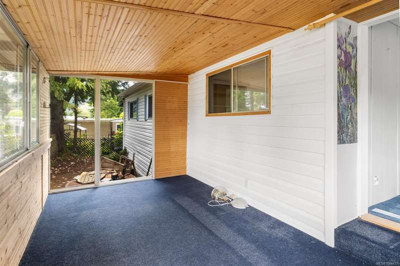 Welcome to one of the larger homes in sought-after Brinkworthy Estates (55+), offering 1,502 sq ft of bright, cheery living on a private corner lot. This spacious 3-bedroom, 2-bathroom home offers an inviting layout with an updated white kitchen with ample cupboard space and newer stainless steel appliances, generous living room featuring a cozy wood stove, sun room with hot tub, mud room, and tasteful upgrades throughout. A covered carport, greenhouse and workshop add to the great features here. Enjoy outdoor relaxation on the covered porch and patio area, surrounded by easy-care perennial landscaping and a rock and water installation. This friendly 55+ community offers great amenities including a clubhouse, fenced dog park, and community garden. Stroll the scenic trail into town and hop on the bus for the ride back. Comfort, convenience, and community, all in one ideal package!