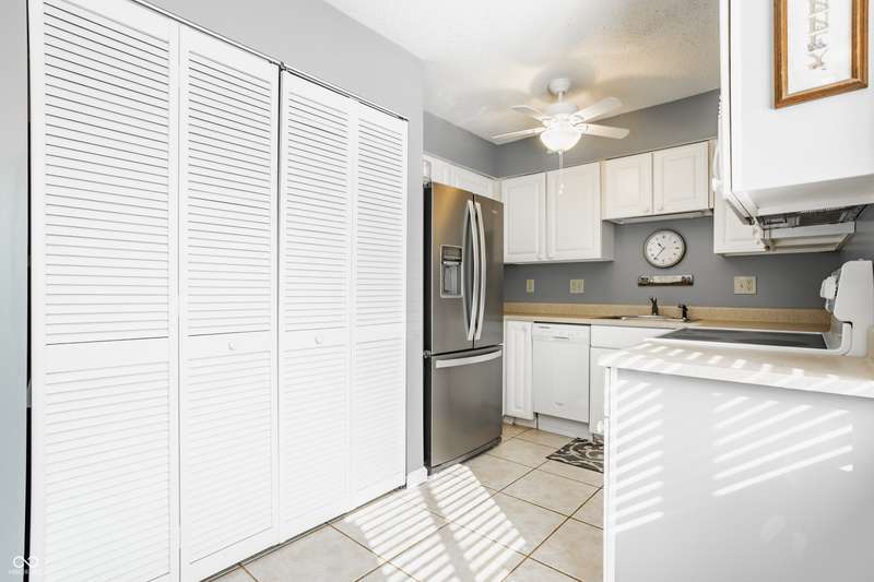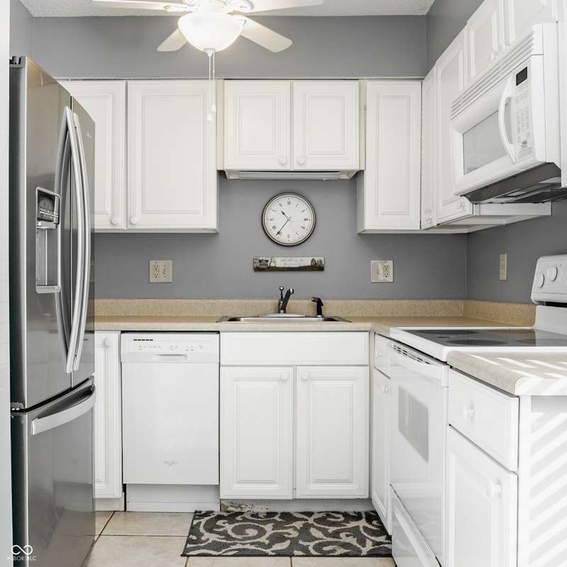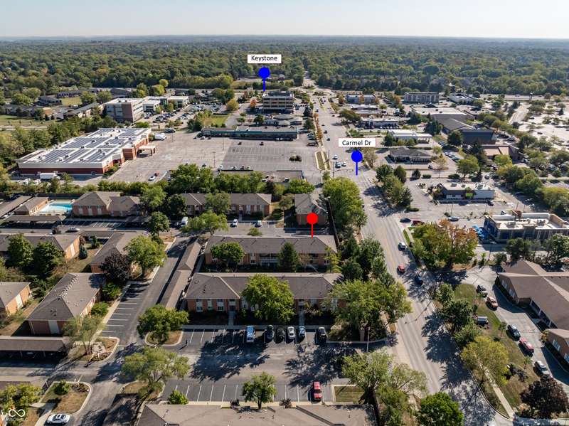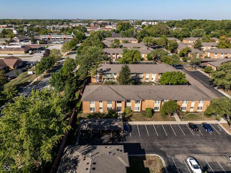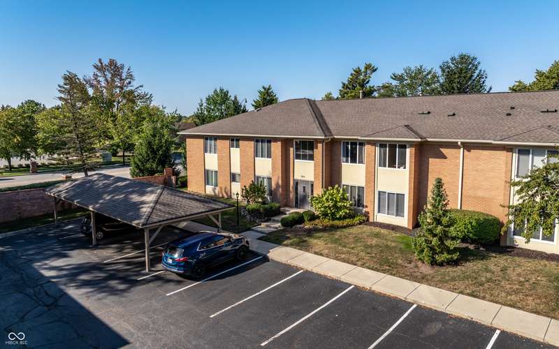 You've found it - a tidy 1 bedroom, 1 bath condo nestled in the heart of Carmel. One of a tight-knit community of 21 2-story garden type buildings. Homeowners in this community feel a sense of belonging and connection as many walk and spend time outdoors. All exterior maintenance is provided, including snow removal. Stepping in the front door, you'll find a ceramic tile entry leading through to the kitchen and bathroom. Calming slate-blue walls throughout provide continuity and peaceful beauty. The kitchen features white cabinets and appliances, all of which stay with the home. The Dining Room can easily be used as an office or additional living space if needed. The bedroom has direct access to the bathroom and a spacious walk-in closet. This condo comes with a designated carport space, indoor trash receptacle and a locking storage closet in the common area. A community pool and clubhouse are just steps from the front door. Walk to Kroger, Monon Trail and Carmel Arts & Design District. Easy access to Keystone, US31 and I-465.