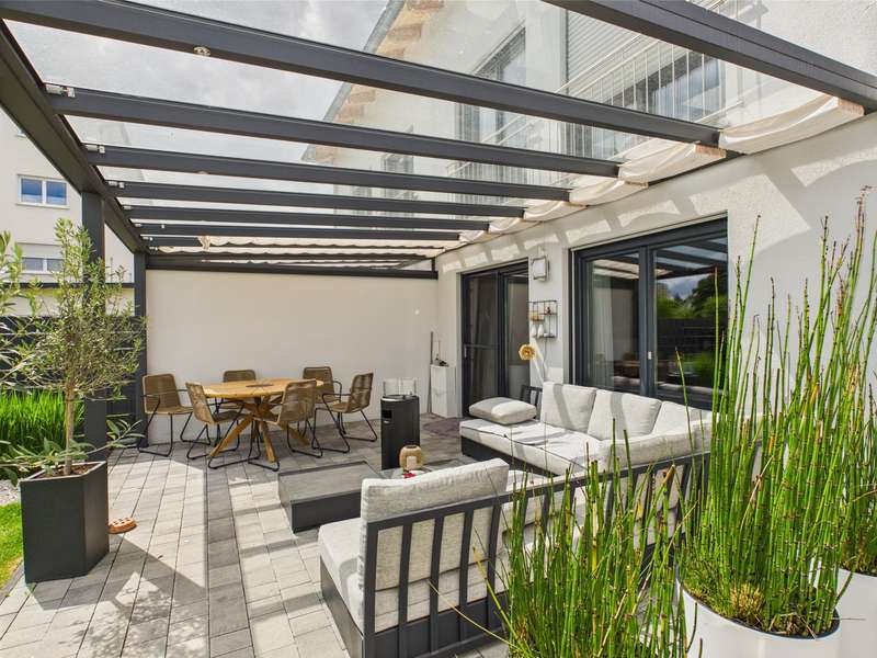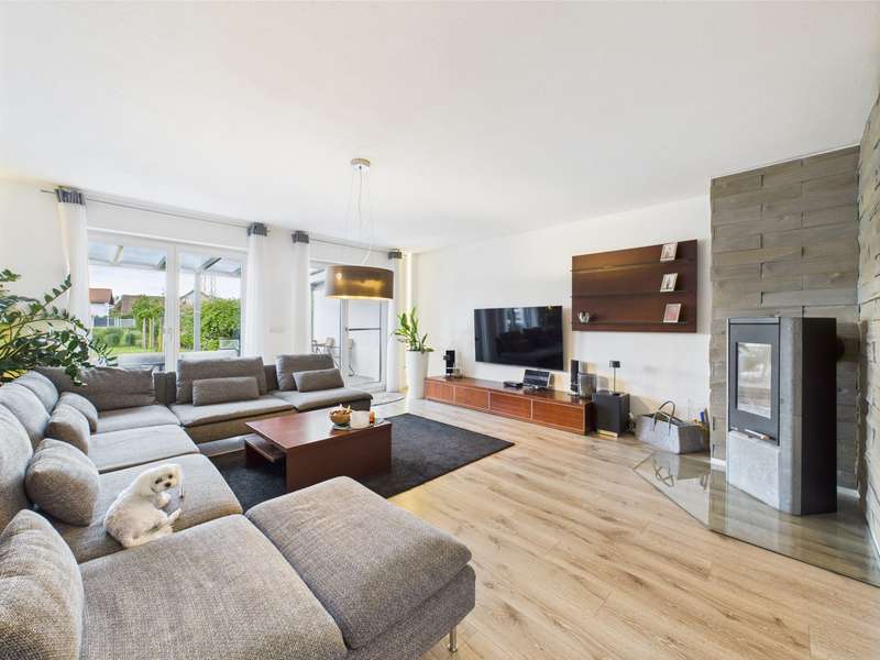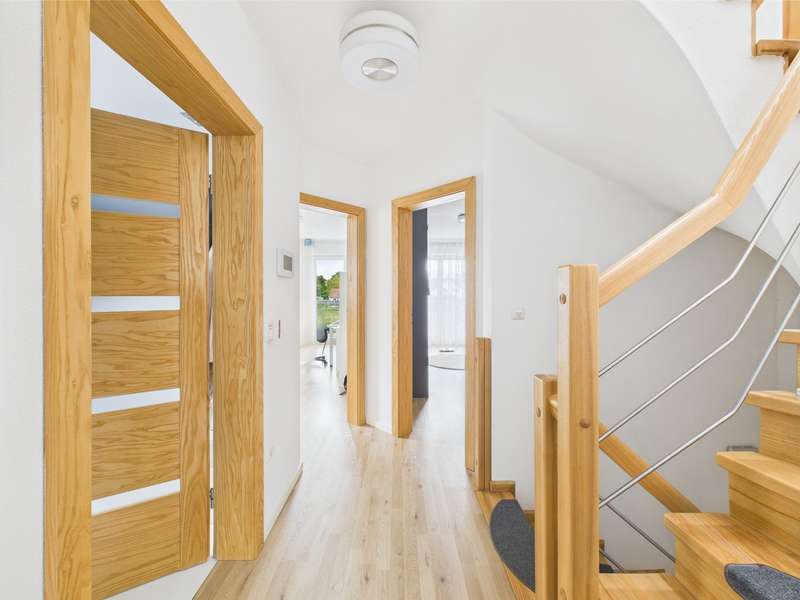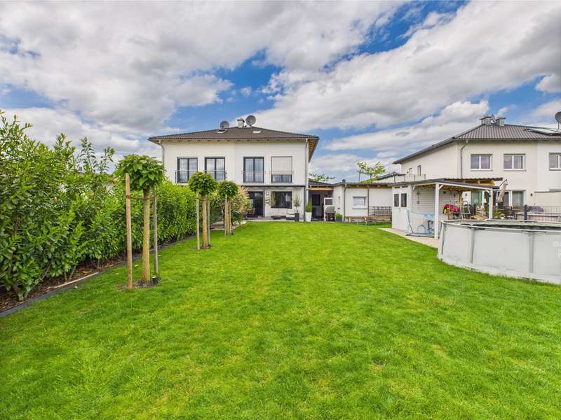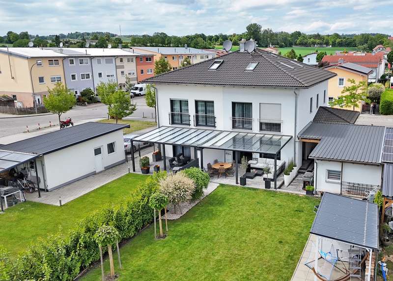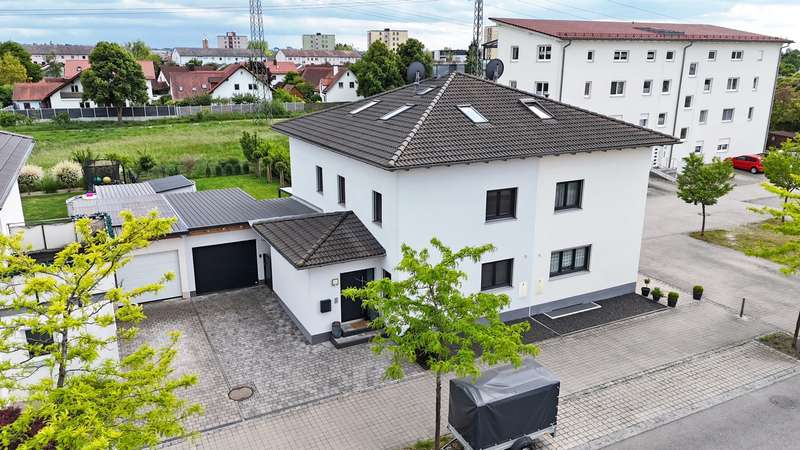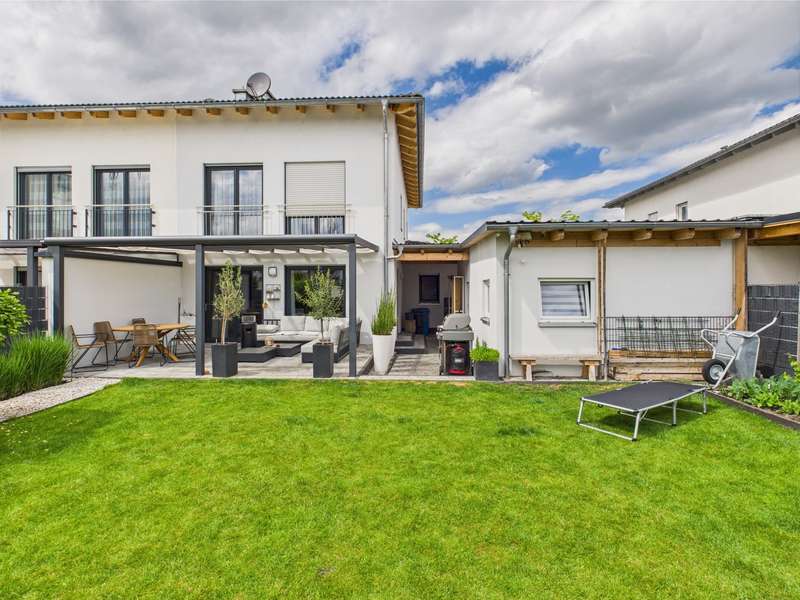 A house that immediately makes you feel at home: With approx. 155 m² of living space and a lovingly landscaped garden on a plot of around 500 m², this exceptionally well-kept semi-detached house from 2014 offers the perfect environment for families who want to live in style, modern and yet comfortable. In one of Landshut's most family-friendly residential areas - quiet, green and yet close to the city - this home combines urban proximity with quality of life. The rooms radiate warmth and spaciousness: The open-plan living area with high-quality fitted kitchen, cozy Swedish stove and direct access to the covered terrace is the heart of the house - a place for shared moments, play and enjoyment. The garden with atmospheric lighting, garden shed and several outdoor seating areas invites you to linger and relax - whether for children or sociable evenings with friends. On the upper floor, you will find a tastefully furnished daylight bathroom with shower, bathtub and bidet as well as a practical dressing room. The converted attic studio offers space for creative ideas - as a home office, children's floor or retreat. The fittings are impressive: triple-glazed windows, modern gas heating (efficiency class C), underfloor heating, decalcification system - everything is state of the art. The basement is also finished to a high standard and can be used in a variety of ways. An extended garage with integrated workshop and other outbuildings offer additional convenience. Particularly worth mentioning: the house has been maintained with great care by the owners - it is in a condition that is rarely found. Simply move in and feel completely at home. You can access the 360-degree digital tour via this link: https://tour.giraffe360.com/e75c763f161146028884e9ee6b64559d/
