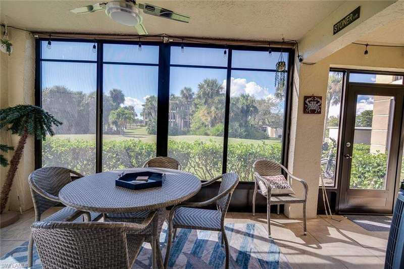 Welcome to Kelly Greens Golf & Country Club - where resort-style living meets everyday comfort. This first-floor 2-bedroom, 2-bath home pairs golf course and lake views with an unbeatable location just minutes from Sanibel Island and Fort Myers Beach. Turnkey and move-in ready, it's designed for effortless living. The open layout is *enhanced by custom raised ceilings,* creating a bright, airy feel that flows into a screened, tiled lanai - the perfect spot for morning coffee or sunset views over the fairway. The kitchen blends style and function with stainless steel appliances, generous cabinetry, and a breakfast bar ideal for casual dining or entertaining. The primary suite offers a peaceful retreat with a spacious walk-in closet, en-suite bath, and tranquil views. A comfortable guest room adds flexibility for visitors or a home office, while conveniences like covered parking and exterior storage make everyday living easy. Life at Kelly Greens means access to a newly renovated 18-hole championship golf course, tennis and pickleball courts, a heated pool and spa, fitness center, and two on-site restaurants - from relaxed bites at The Grille Room to refined dining at The Osprey. Whether you're seeking a seasonal escape or a year-round residence, this home delivers that signature Florida balance - laid-back luxury with a side of sunshine.