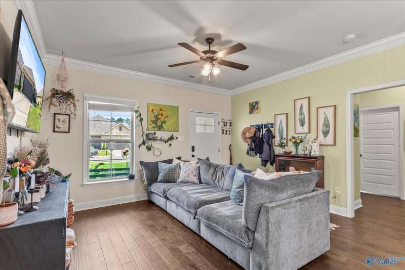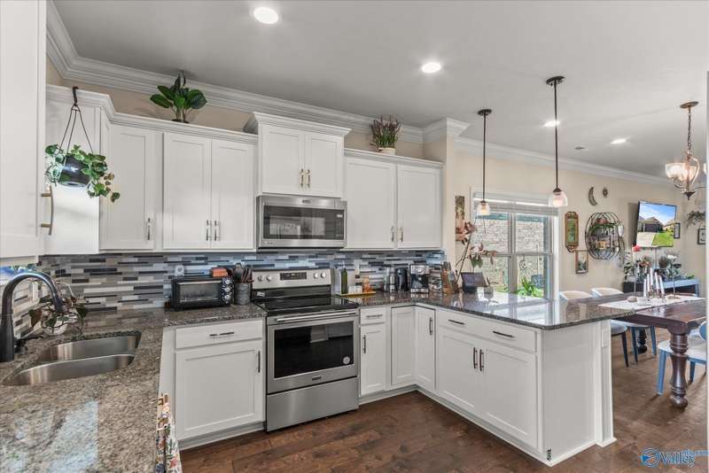 PRICE IMPROVEMENT! Step inside this nearly new Caldwell III A in Kennesaw Creek and you’ll notice the upgrades right away. Granite countertops, custom backsplash, undermount sinks, and a pull-down kitchen faucet bring style to the open kitchen. Wood and ceramic tile floors flow throughout, accented by recessed and pendant lighting, ceiling fans, and Venetian bronze fixtures. Outdoors, enjoy stone-edged landscaping, coach lighting, gutters, and stone address block. Energy-efficient features include Low E-3 vinyl windows, electric appliances, and a termite system.