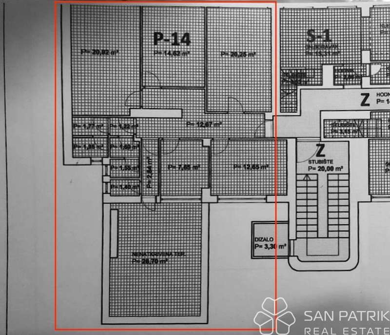 PP-14 - 5th floor - living area 100.92 m2 (2 bedrooms + 2 bathrooms + office + meeting room) + uncovered terrace (27.80 m2) = EUR 570,000
