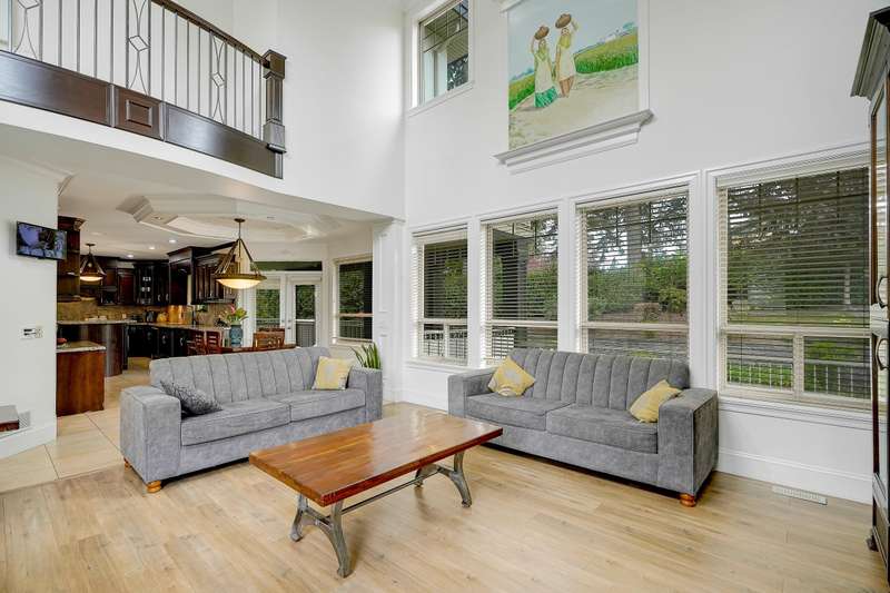 Room to live and grow in Panorama Ridge. At the end of a quiet cul-de-sac, this 7,621 sq.ft. home sits on a 20,037 sq.ft. lot and offers 10 bedrooms and 8 bathrooms, including a 2 bedroom suite. Main floor features a formal living/dining, chef's kitchen w/ gas stove, wok kitchen, nook, family room, plus 2 bedrooms and a full bath. Upstairs you’ll find 5 generous bedrooms with bath access; the primary bedroom has a balcony, 5 pc ensuite and walk-in closet. Entertain on the large main-floor deck. Enjoy the triple car garage plus 7 extra parking spots, great for large families. High ceilings, theatre room with wet bar and a detached shed. Walk to the elementary school; quick access to Hwy 10 & 91. Flowing plan suits multi-generational living.