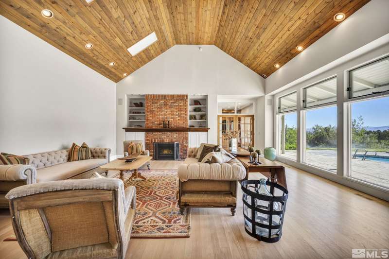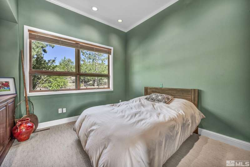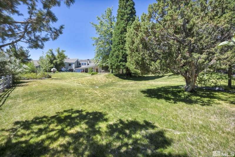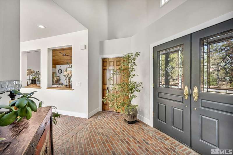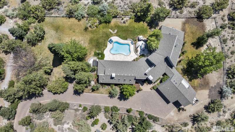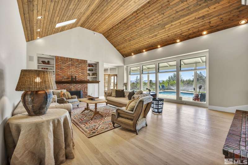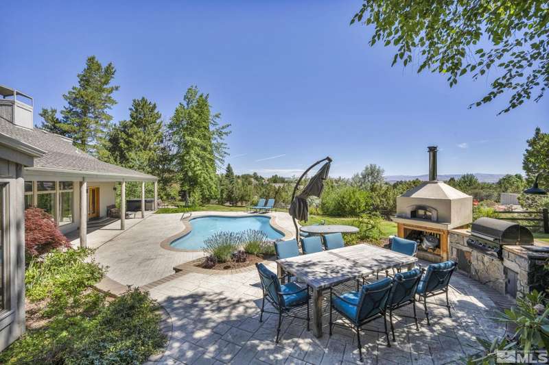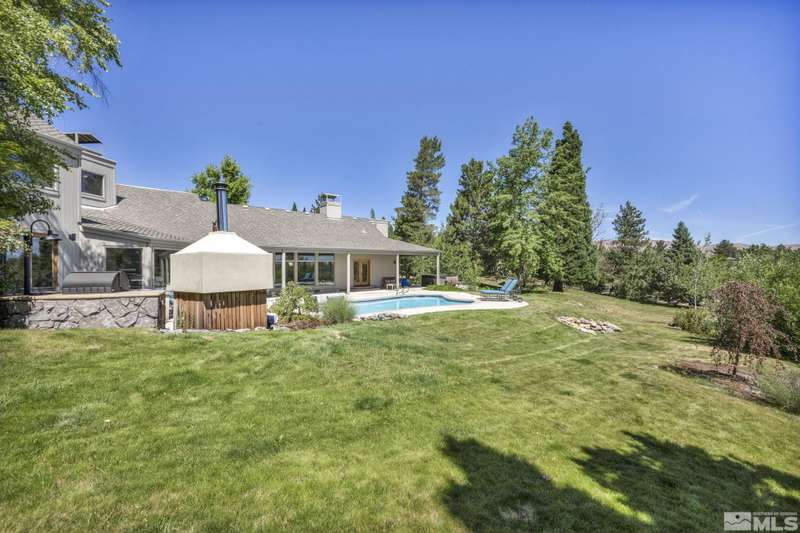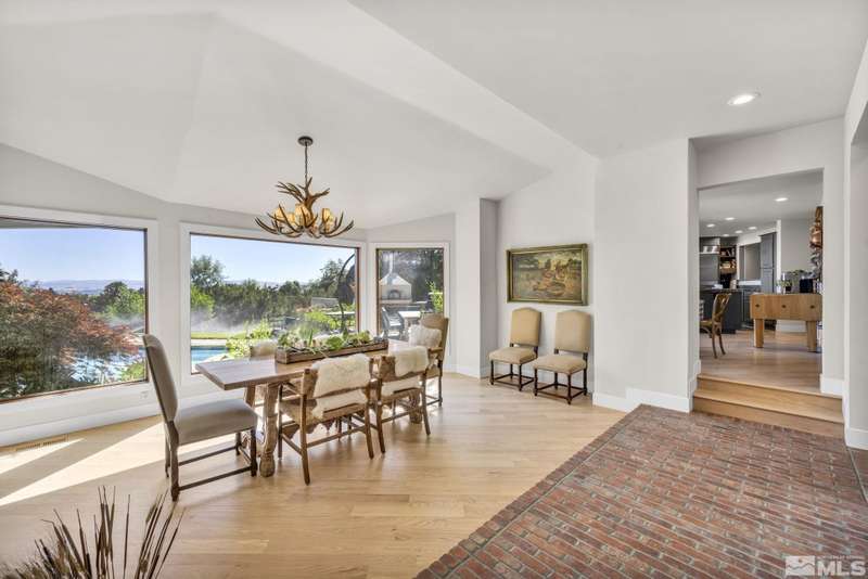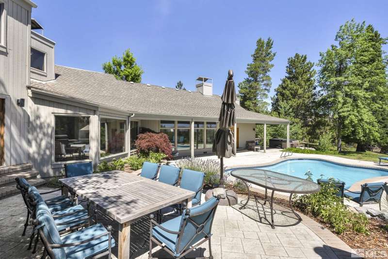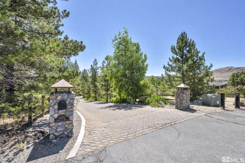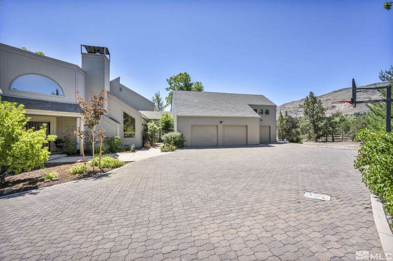Elegant Hillside Retreat | Unparalleled Privacy, Light & Luxury. Nestled in the prestigious hillside between the coveted Juniper Trails and Caughlin Ranch neighborhoods, this exquisite five-bedroom estate offers a rare blend of elegance, privacy, and modern comfort. Located within a unique unrestricted area, the home is walking distance to the Caughlin Athletic Club and just minutes from scenic hiking trails, premier dining, and upscale shopping., Yet, tucked away at the end of a long, paver-lined driveway off Plateau Road, this 1.14-acre sanctuary remains completely hidden from the road, ensuring ultimate seclusion and security. Designed for both effortless living and entertaining, the home is bathed in natural light, creating a warm and inviting ambiance. A grand, sunlit entryway welcomes you into a beautifully defined floor plan, where the kitchen, dining, and family rooms flow seamlessly together before extending out to a breathtaking backyard retreat. The expansive outdoor oasis is perfect for entertaining or unwinding in total privacy, featuring a sprawling patio with breathtaking panoramic views of rolling hills and the city skyline. A sparkling pool and rejuvenating hot tub offer year-round relaxation, while lush lawns, a vegetable garden, multiple seating areas, and an entertainer’s BBQ bar create an idyllic setting for hosting unforgettable gatherings. At the heart of the home, the chef’s kitchen is as functional as it is beautiful, featuring double ovens, a gas range, deep sink, and abundant counter and cabinet space. A walk-in pantry with a custom copper door adds both character and practicality. Vintage brick flooring, light-toned red oak, and curated designer touches enhance the home’s timeless charm, while cozy fireplaces anchor the family and living rooms. A sophisticated wine bar with a 266-bottle glass enclosure elevates the main living space, making it perfect for entertaining. The primary suite is a serene sanctuary, offering sweeping views, a private sitting area, and a remodeled spa-like bathroom with premium finishes. With two walk-in closets and two additional standard closets, storage is never an issue. A spacious adjacent room provides the perfect space for a home office or gym. Downstairs, a private en suite guest room offers a luxurious retreat, while two additional bedrooms—one with a loft—share a charming Jack-and-Jill bathroom. A fifth bedroom provides flexibility as an office, bedroom, or creative studio. Additional features include two home offices, four-zone AC/heating with Nest thermostats, a direct-entry five-car garage, an expansive, light-filled laundry room, and a sunny brick atrium. A 788 sq. ft. bonus/game room with a private deck and abundant storage adds even more space for recreation and relaxation. A guest powder room completes this thoughtfully designed home.This extraordinary property is a rare offering, blending sophistication, comfort, and exclusivity—a private hillside oasis in one of the area’s most desirable locations.
