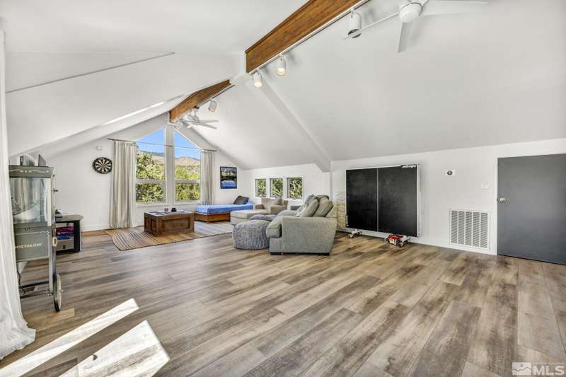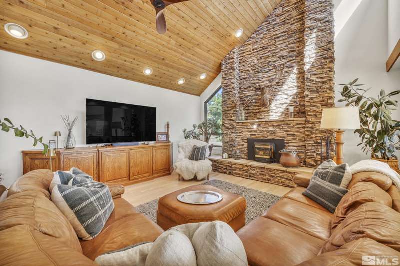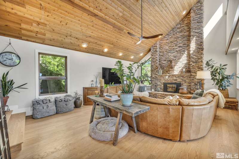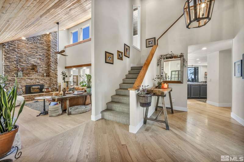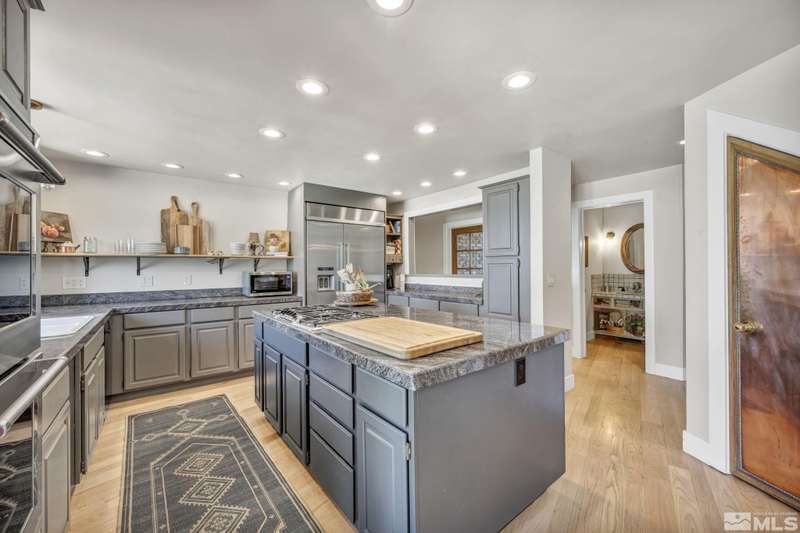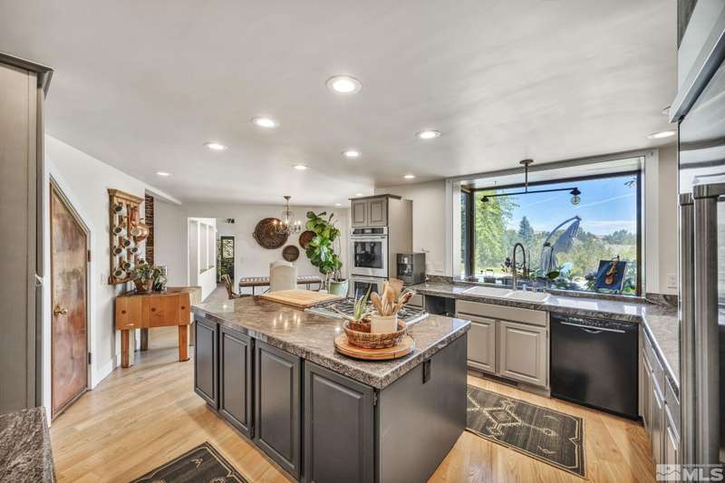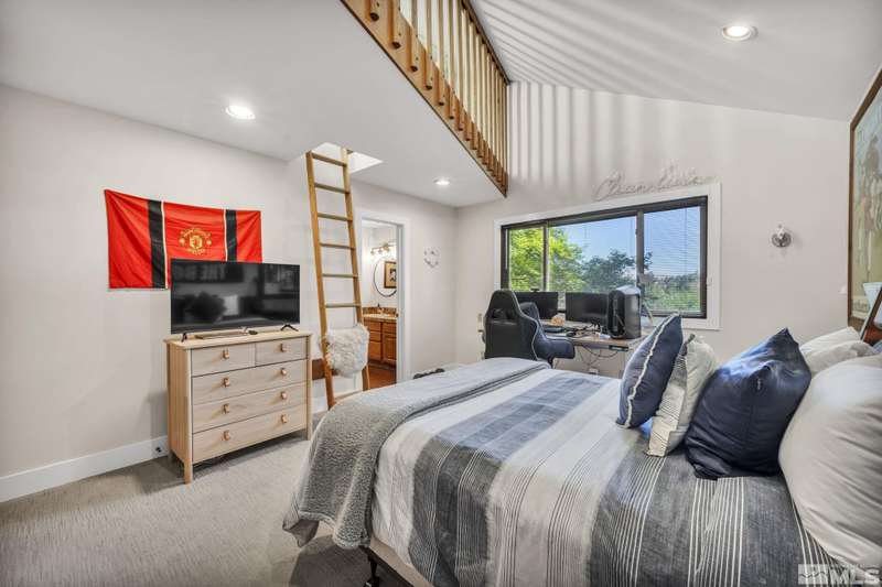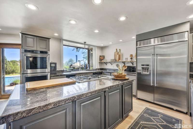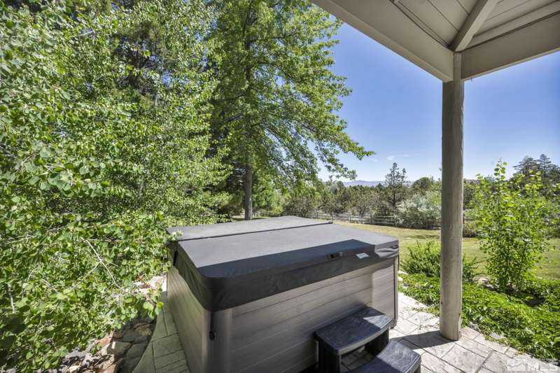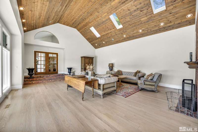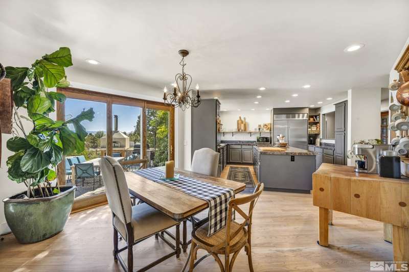 Elegant Hillside Retreat | Unparalleled Privacy, Light & Luxury. Nestled in the prestigious hillside between the coveted Juniper Trails and Caughlin Ranch neighborhoods, this exquisite five-bedroom estate offers a rare blend of elegance, privacy, and modern comfort. Located within a unique unrestricted area, the home is walking distance to the Caughlin Athletic Club and just minutes from scenic hiking trails, premier dining, and upscale shopping., Yet, tucked away at the end of a long, paver-lined driveway off Plateau Road, this 1.14-acre sanctuary remains completely hidden from the road, ensuring ultimate seclusion and security. Designed for both effortless living and entertaining, the home is bathed in natural light, creating a warm and inviting ambiance. A grand, sunlit entryway welcomes you into a beautifully defined floor plan, where the kitchen, dining, and family rooms flow seamlessly together before extending out to a breathtaking backyard retreat. The expansive outdoor oasis is perfect for entertaining or unwinding in total privacy, featuring a sprawling patio with breathtaking panoramic views of rolling hills and the city skyline. A sparkling pool and rejuvenating hot tub offer year-round relaxation, while lush lawns, a vegetable garden, multiple seating areas, and an entertainer’s BBQ bar create an idyllic setting for hosting unforgettable gatherings. At the heart of the home, the chef’s kitchen is as functional as it is beautiful, featuring double ovens, a gas range, deep sink, and abundant counter and cabinet space. A walk-in pantry with a custom copper door adds both character and practicality. Vintage brick flooring, light-toned red oak, and curated designer touches enhance the home’s timeless charm, while cozy fireplaces anchor the family and living rooms. A sophisticated wine bar with a 266-bottle glass enclosure elevates the main living space, making it perfect for entertaining. The primary suite is a serene sanctuary, offering sweeping views, a private sitting area, and a remodeled spa-like bathroom with premium finishes. With two walk-in closets and two additional standard closets, storage is never an issue. A spacious adjacent room provides the perfect space for a home office or gym. Downstairs, a private en suite guest room offers a luxurious retreat, while two additional bedrooms—one with a loft—share a charming Jack-and-Jill bathroom. A fifth bedroom provides flexibility as an office, bedroom, or creative studio. Additional features include two home offices, four-zone AC/heating with Nest thermostats, a direct-entry five-car garage, an expansive, light-filled laundry room, and a sunny brick atrium. A 788 sq. ft. bonus/game room with a private deck and abundant storage adds even more space for recreation and relaxation. A guest powder room completes this thoughtfully designed home.This extraordinary property is a rare offering, blending sophistication, comfort, and exclusivity—a private hillside oasis in one of the area’s most desirable locations.