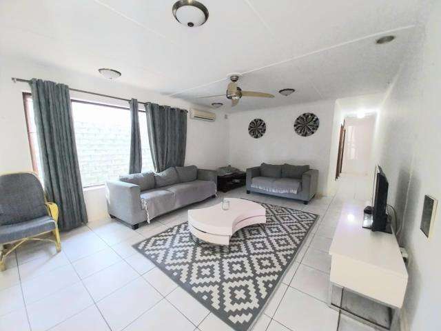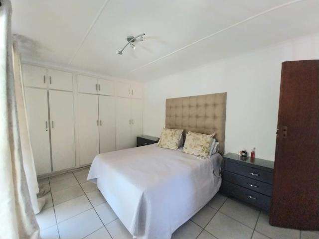 Come home at the end of a hectic day to this peaceful haven and the end of a cul-da-sac. Relax next to the pool or go for a stroll in you own garden of Eden. This 3 room home is just what you need. Spacious rooms with built-in cupboards, The master bedroom have its own en-suit bathroom with a shower. The modern kitchen makes cooking a pleasure. Modern Gas stove installed to save on costs. What a **BONUS** you save on electricity. No stressful load shedding episodes as all the stove needs is gas. The spacious open plan dining area flows into the family room. Call me today to make this your dream home.