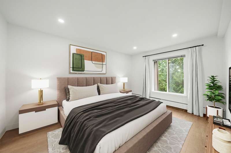 Fully updated 2-bedroom, 1.5-bathroom condo in Richmond's desirable Boyd Park. This modern, bright, and clean unit boasts BRAND-NEW stainless appliances, French door fridge, quartz counter-top, shaker cabinet with extra cabinet and wine fridge in the dining room, and a private balcony overlooking lush greenery, ensuring tranquility as it's situated toward the building's end. Residents enjoy access to exceptional amenities, including indoor and outdoor pools, a hot tub, sauna, gym, and clubhouse. Conveniently located, cross street from Seafair Shopping Centre, minutes walk to West Richmond Community Centre, public transit, Grauer Elementary and Hugh Boyd Secondary. Some photos are virtually staged.