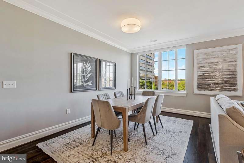 Welcome to The Signet, McLean's premier luxury condo building, perfectly situated in the heart of the new-town streetscape. This exceptional location places you just blocks from downtown McLean's vibrant retail and dining scene, minutes from Georgetown and DC, a little over a mile from the Silver Line Metro, and only three miles from Tysons Corner. This spacious third-floor unit features two generously sized bedrooms-each with its own balcony overlooking the serene Signet Park at Elm Street-along with two elegant bathrooms and walk-in closets. Beautiful hardwood floors extend throughout the open-concept layout, which showcases a stunning gourmet kitchen with a large island, top-of-the-line appliances, and seamless flow into the dining and living areas. Additional highlights include two reserved parking spaces in the secure garage (Spaces 297 & 298).The Signet features lots of amenities including a grand lobby entrance with full-serve concierge, beautifully landscaped courtyard with 4 lounge areas offering: tables, fire pit area with seating, Trellis-covered outdoor bar and grilling area with sink, fridge and dining tables. There is a clubroom, fitness center, sauna, steam room, massage room, fitness trail, pet spa & much more! The new home of McLean Project of the Arts will be ready by end of the year in the Rotonda with small coffee shop.