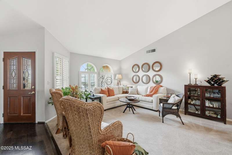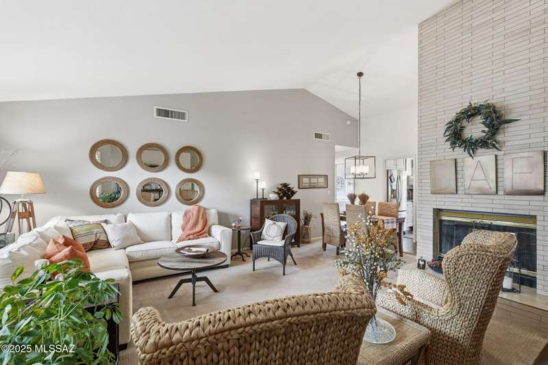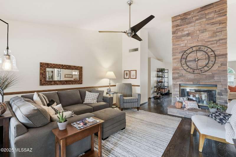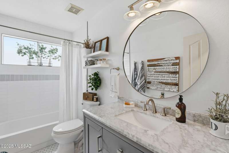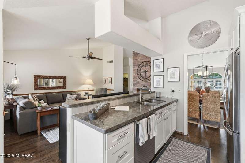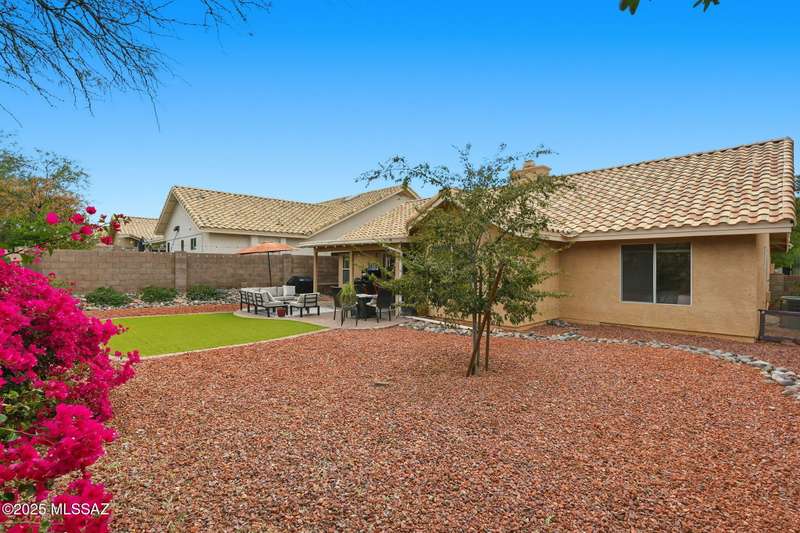 Beautifully updated home in Northwest Tucson featuring a modern kitchen with recently replaced stainless appliances and stylishly renovated baths. Soaring cathedral ceilings create an airy, inviting living space filled with natural light. Enjoy year-round comfort with a newer heating and cooling system and peace of mind with a brand-new tile roof. The meticulously designed and landscaped yard offers stunning mountain and desert views--an ideal setting for outdoor dining, relaxing, and taking in Tucson's breathtaking vistas. A truly move-in-ready retreat.